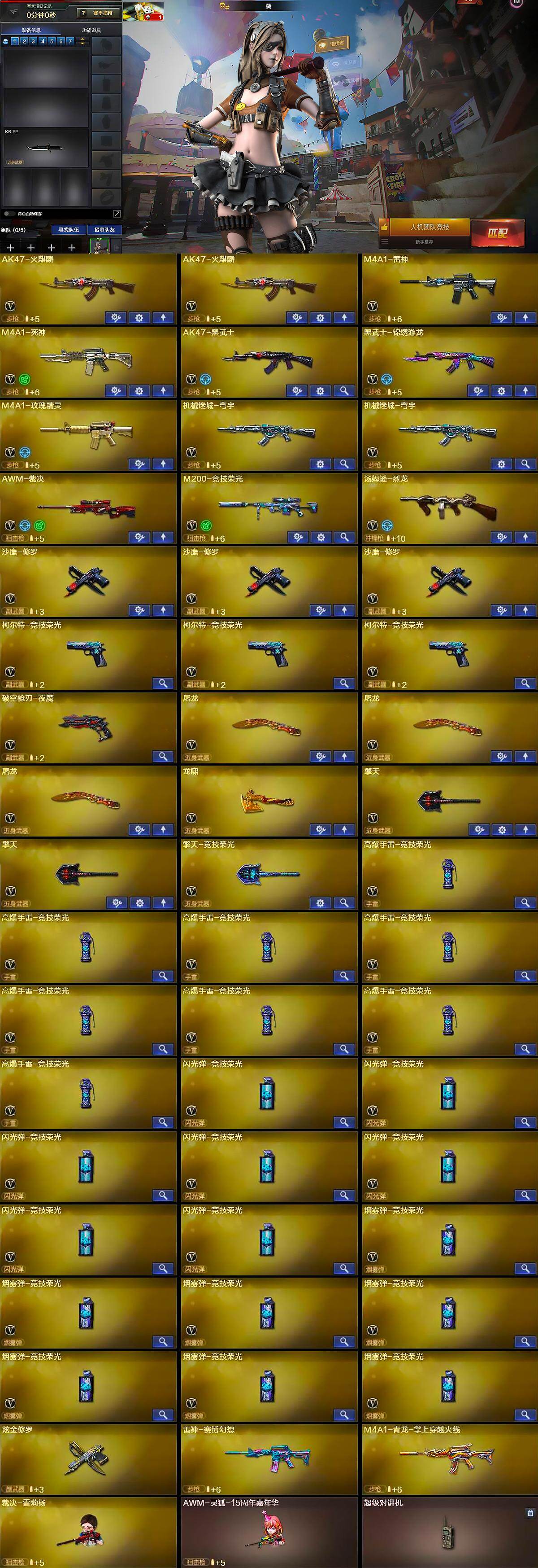 【英雄级武器】:AK47-火麒麟*2,M4A1-雷神,M4A1-死神,AK47-黑武士,黑武士-锦绣游龙,M4A1-玫瑰精灵,机械