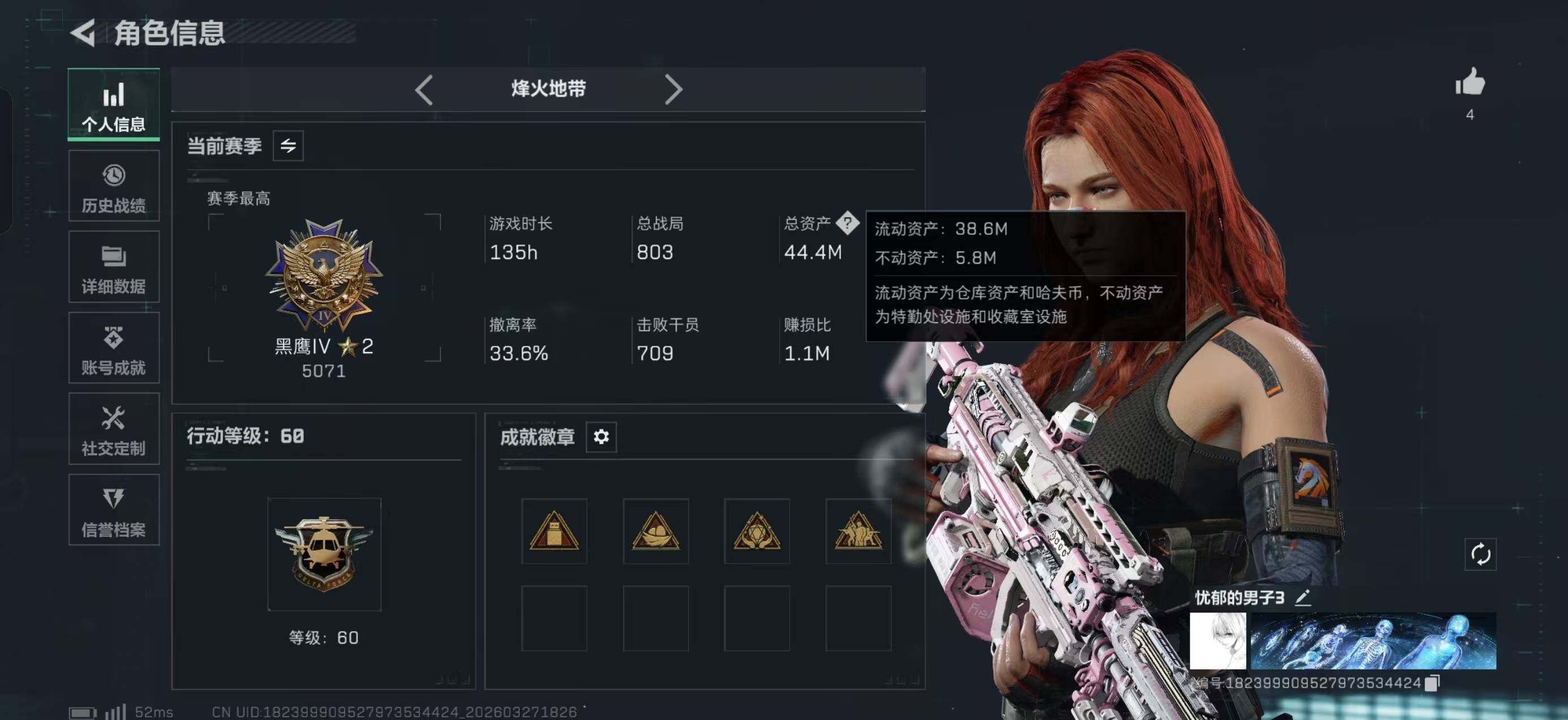 44m总资产-5920k哈夫币-60烽火等级-黑鹰-14战场等级-上等兵
