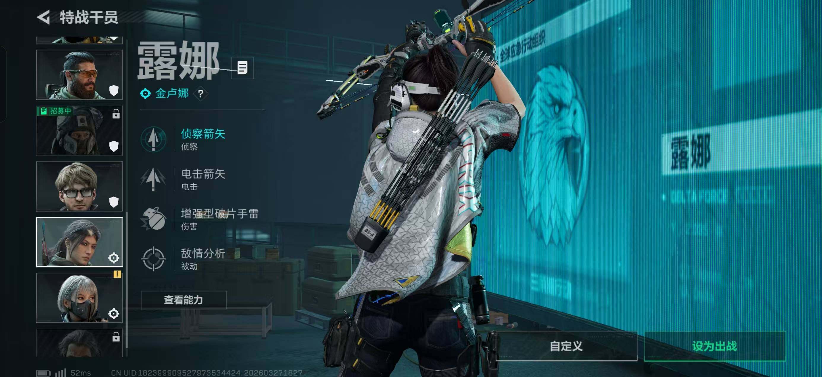 【干员外观】:红狼-蚀金玫瑰,威龙-凌霄戍卫,露娜-金牌射手,乌鲁鲁-荒原猎手