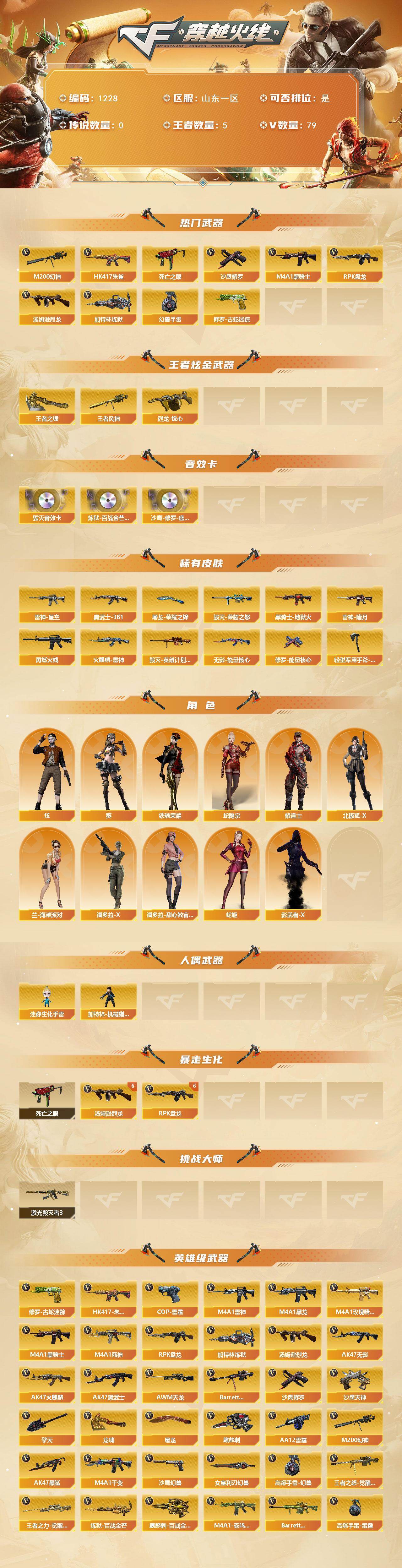 山东一区-79V-5王者-0炫金【热门武器】:HK417-朱雀,M200-幻
