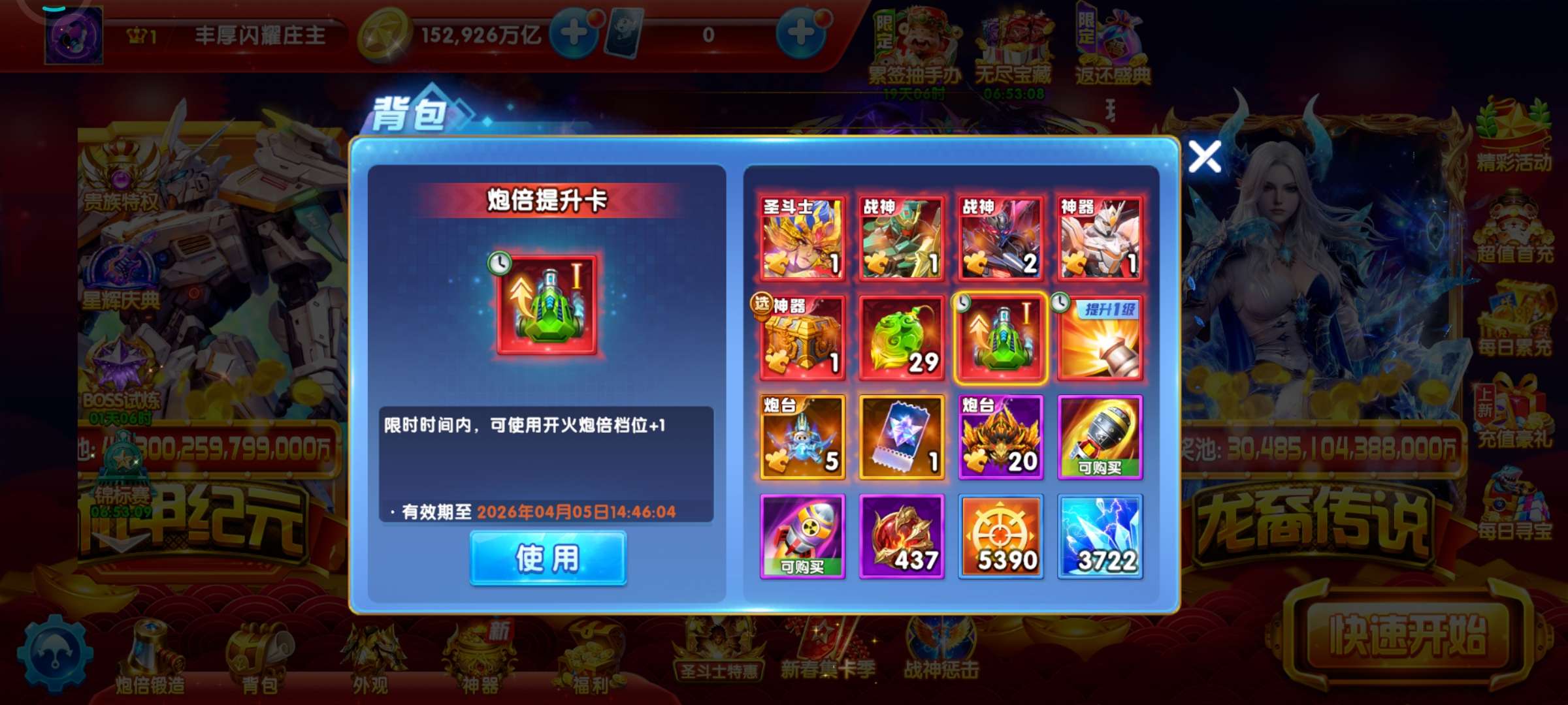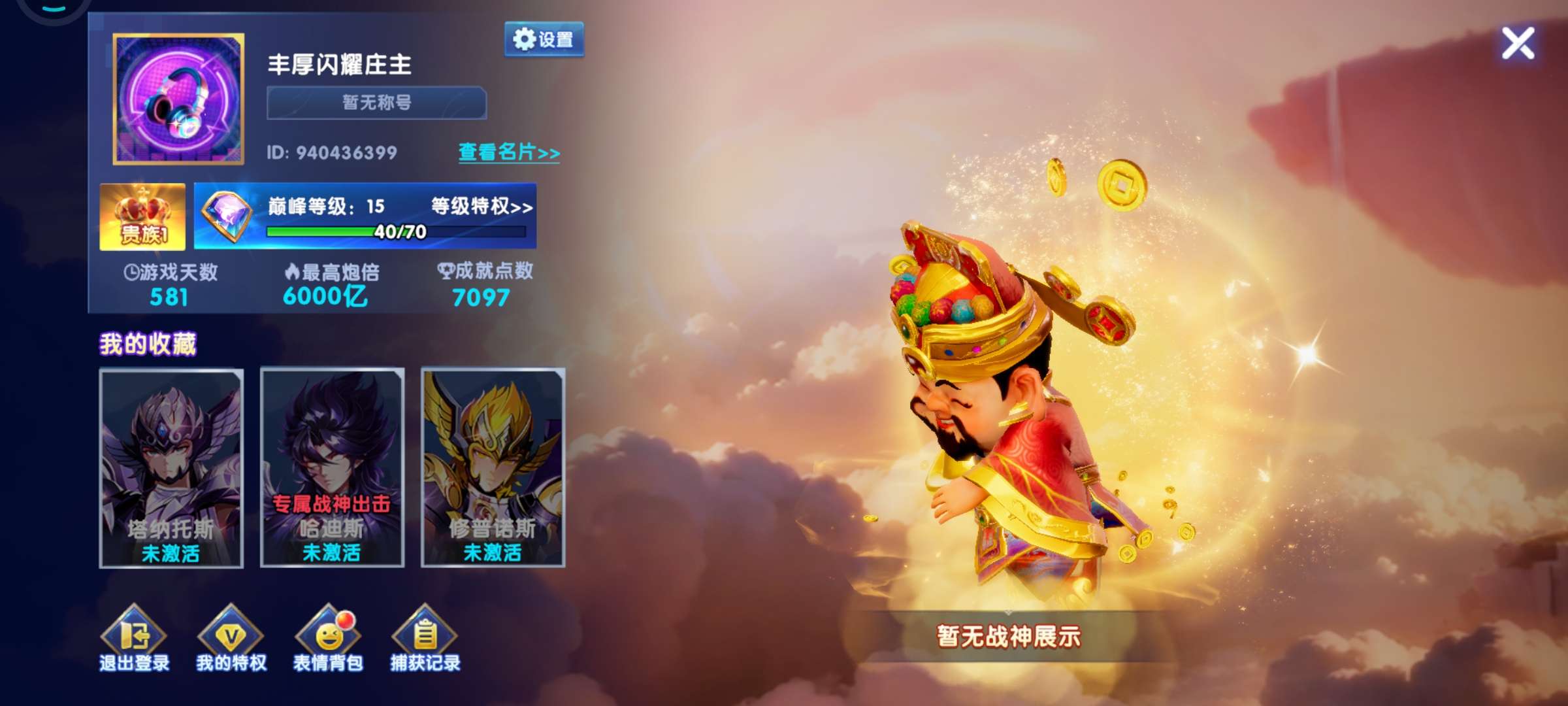 捕鱼大作战小米版本,0.007比例,原60亿炮,金币15兆,巅峰15级,巨多boss未打!