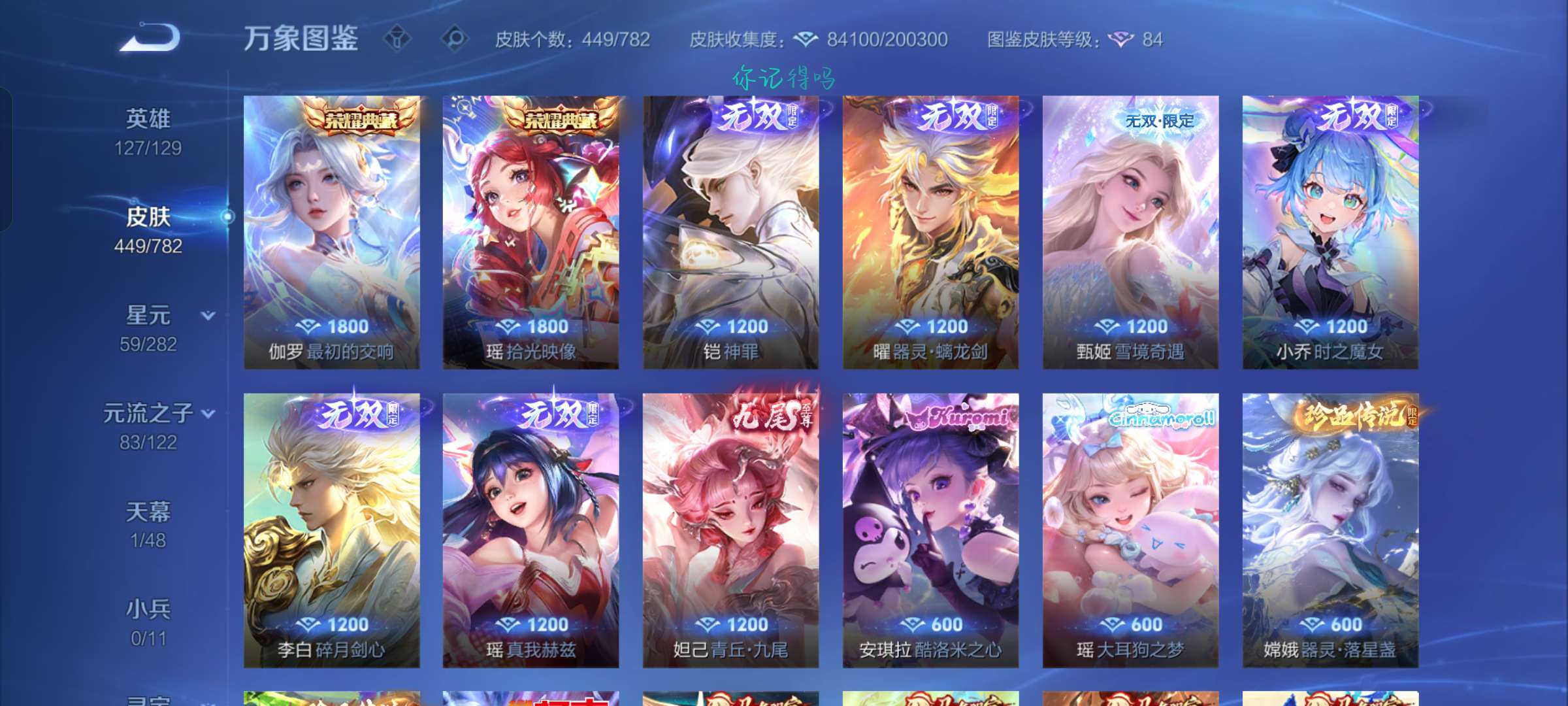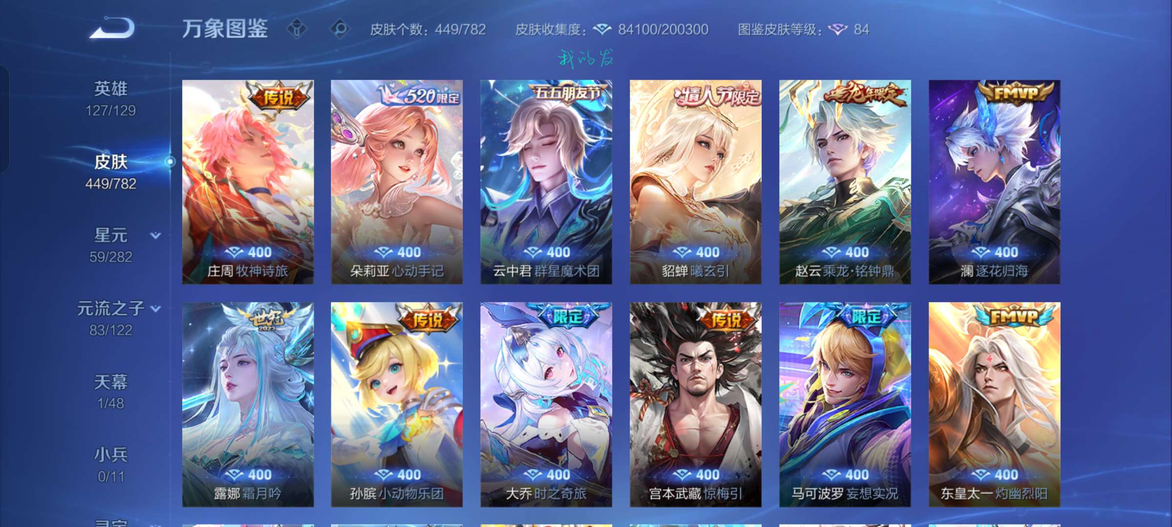 V9 皮肤450 英雄127 非凡王者 荣耀典藏2 无双皮肤7 珍品传说5 星传说3 传说59