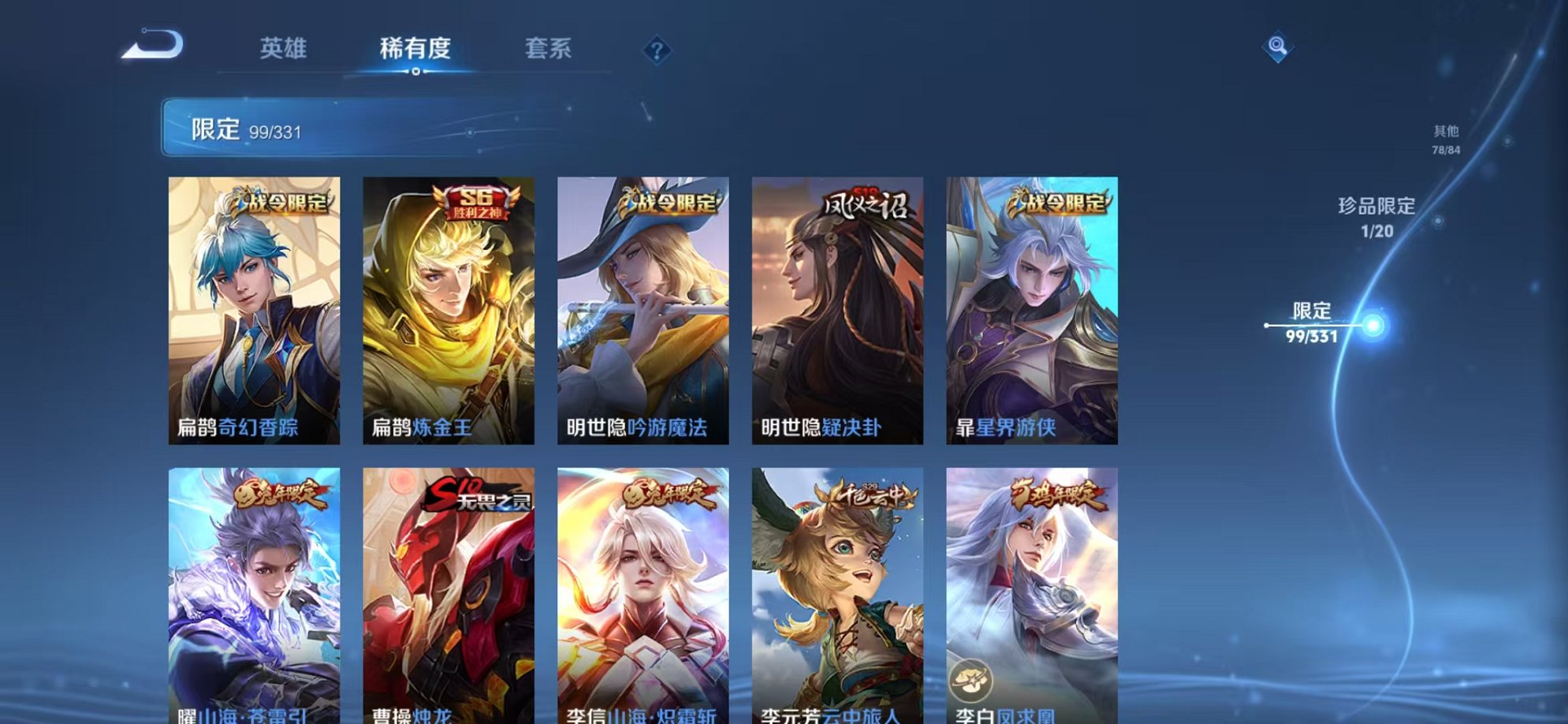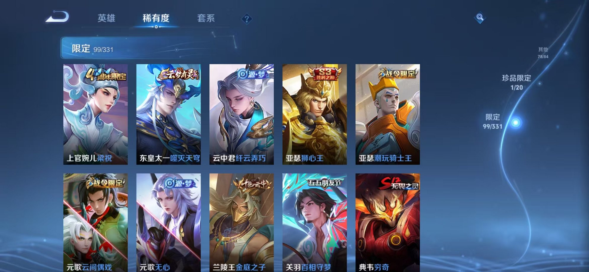 315皮肤2水晶1无双3星元25传说2天幕 -124英雄