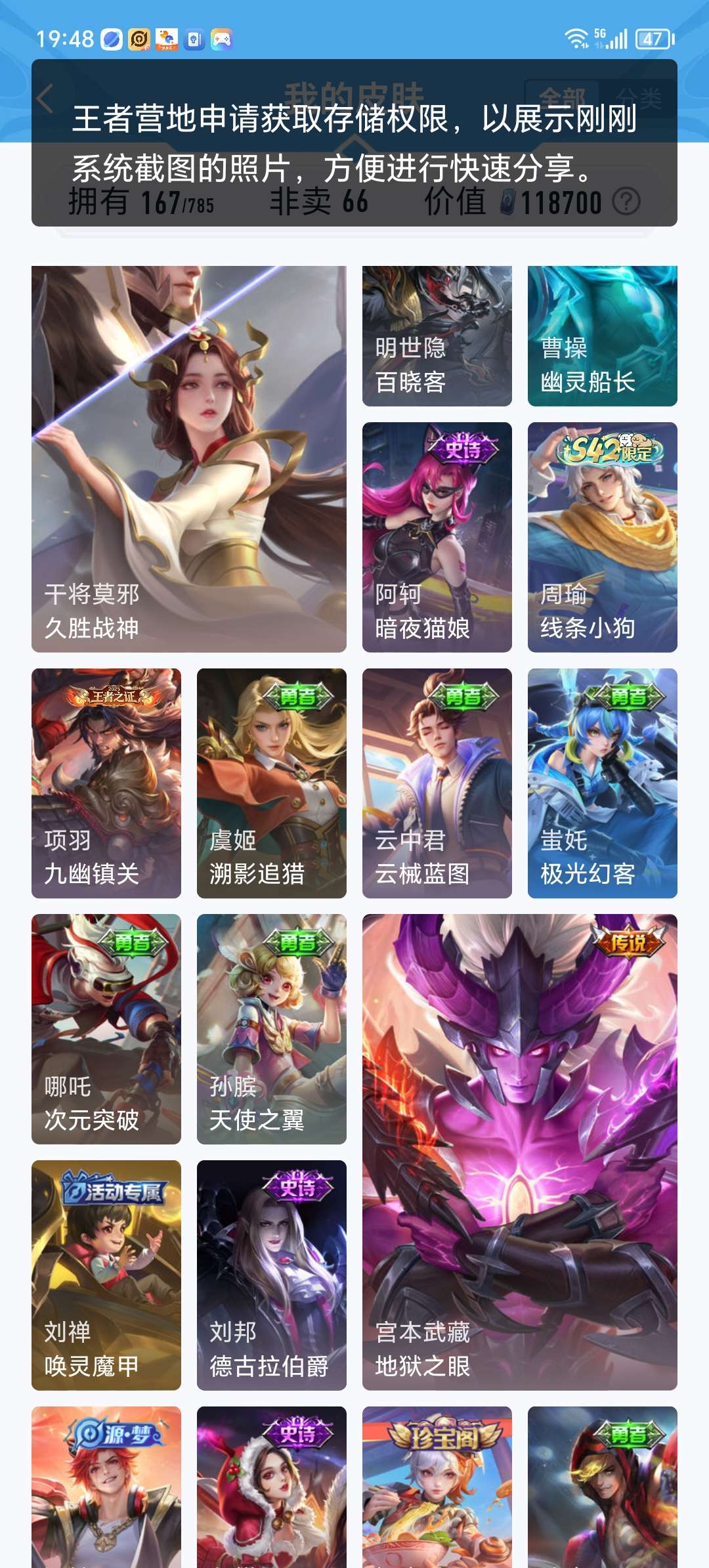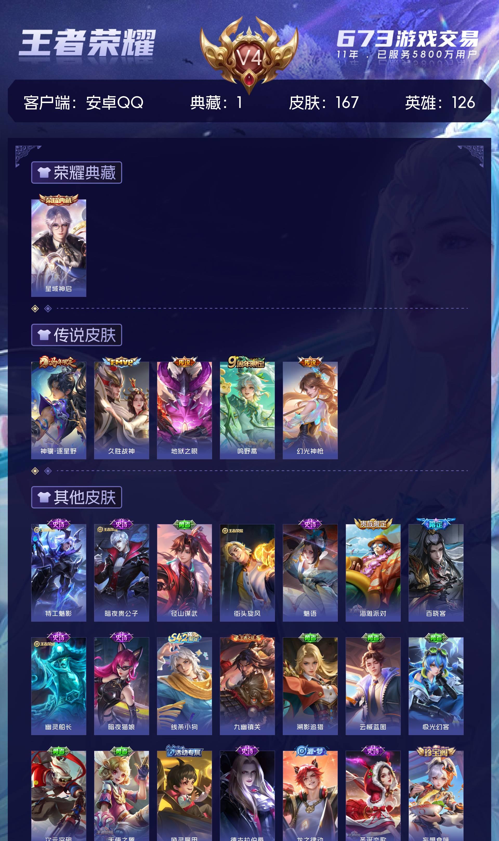 V4 皮肤167 英雄126 荣耀王者 荣耀典藏1 传说5