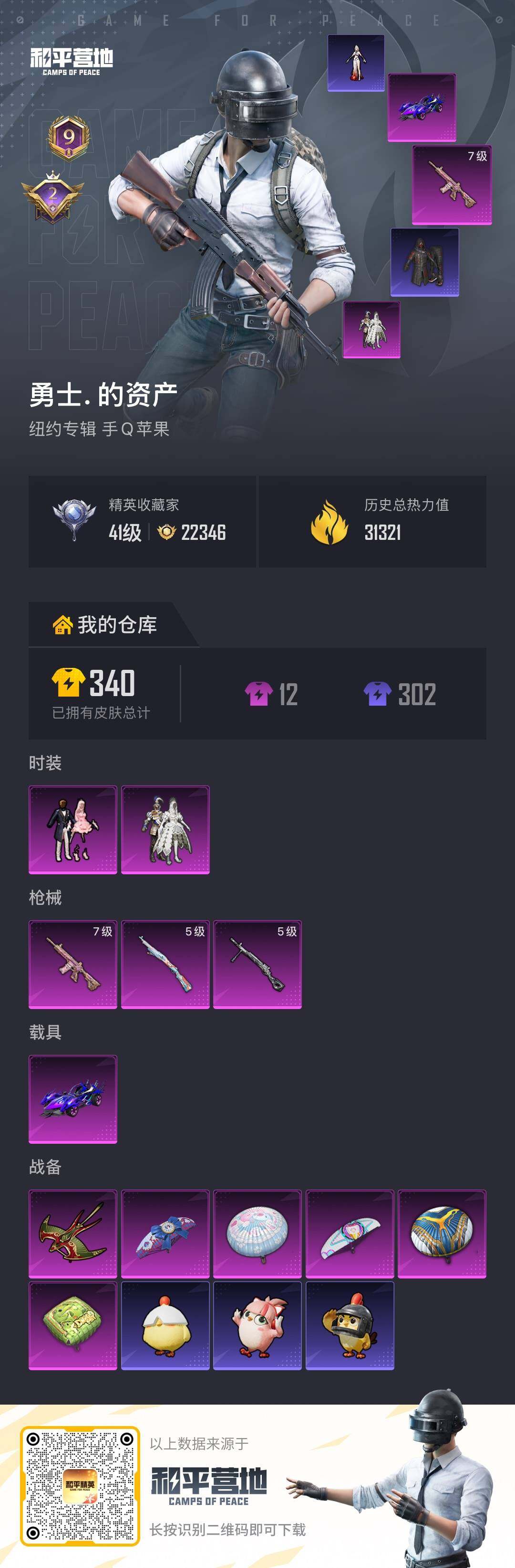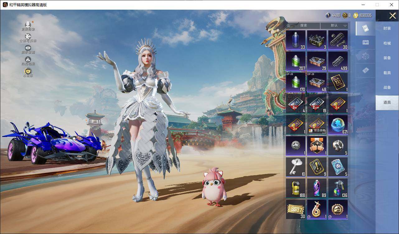2粉装-3特效枪-1载具-1粉色飞行器-31321热力值-9王牌印记-69套装-107枪皮