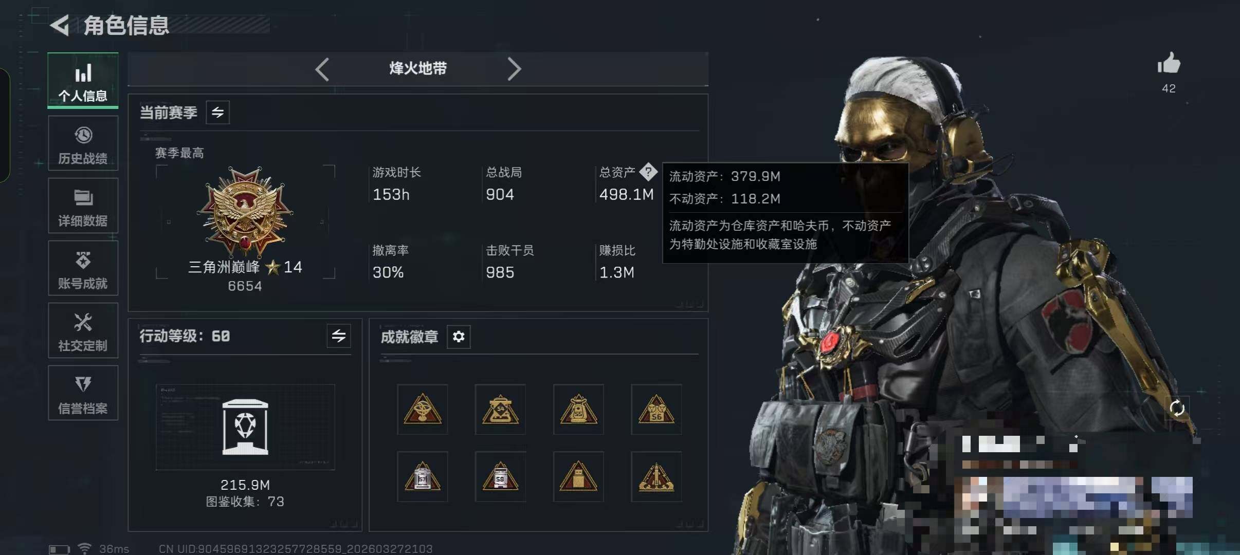 498m总资产-24309k哈夫币-60烽火等级-三角洲巅峰-28战场等级-上等兵
