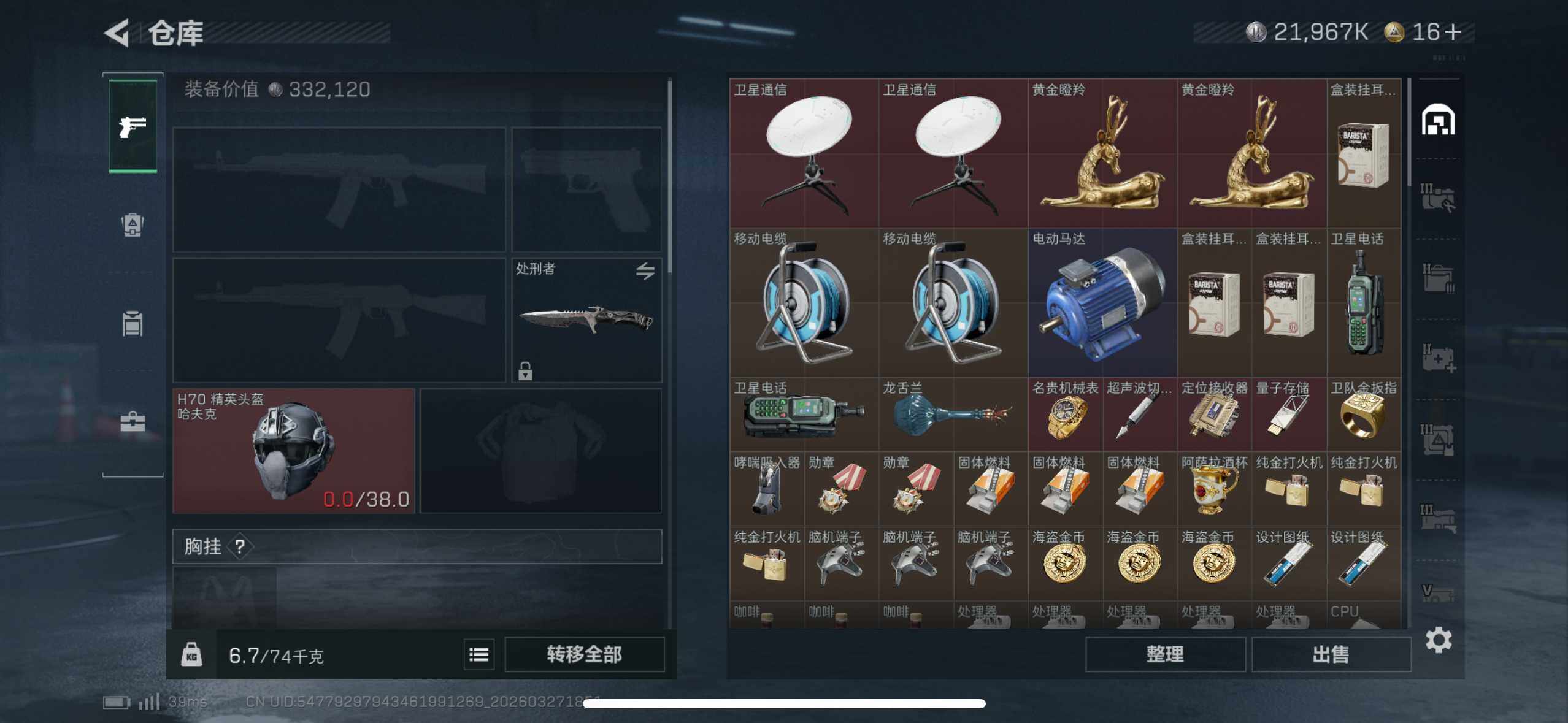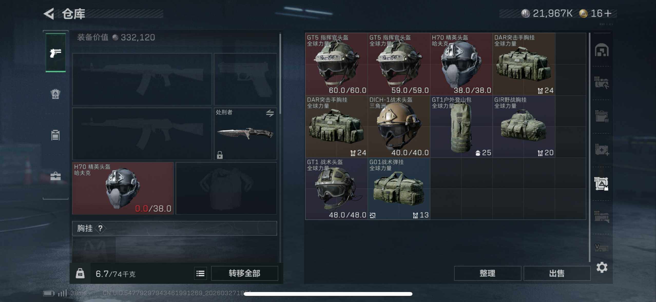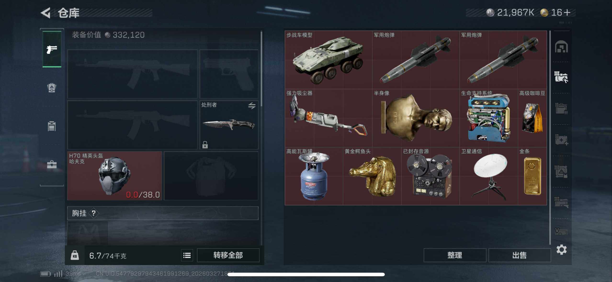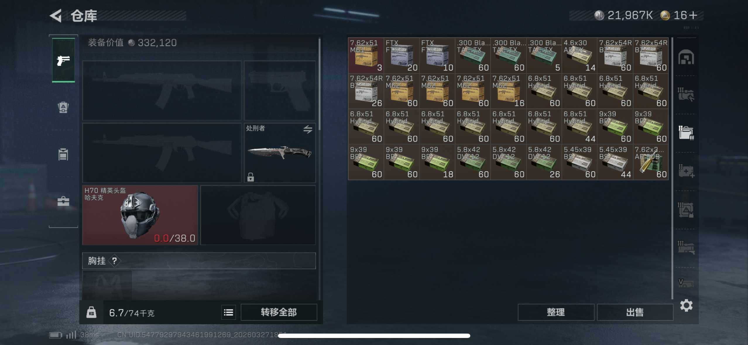 总资产(M):133M/哈夫币(K):21967K/传说枪皮数:8/全面战场等级:15_段位:上等兵/烽火地带等级:53_段位:钻石/