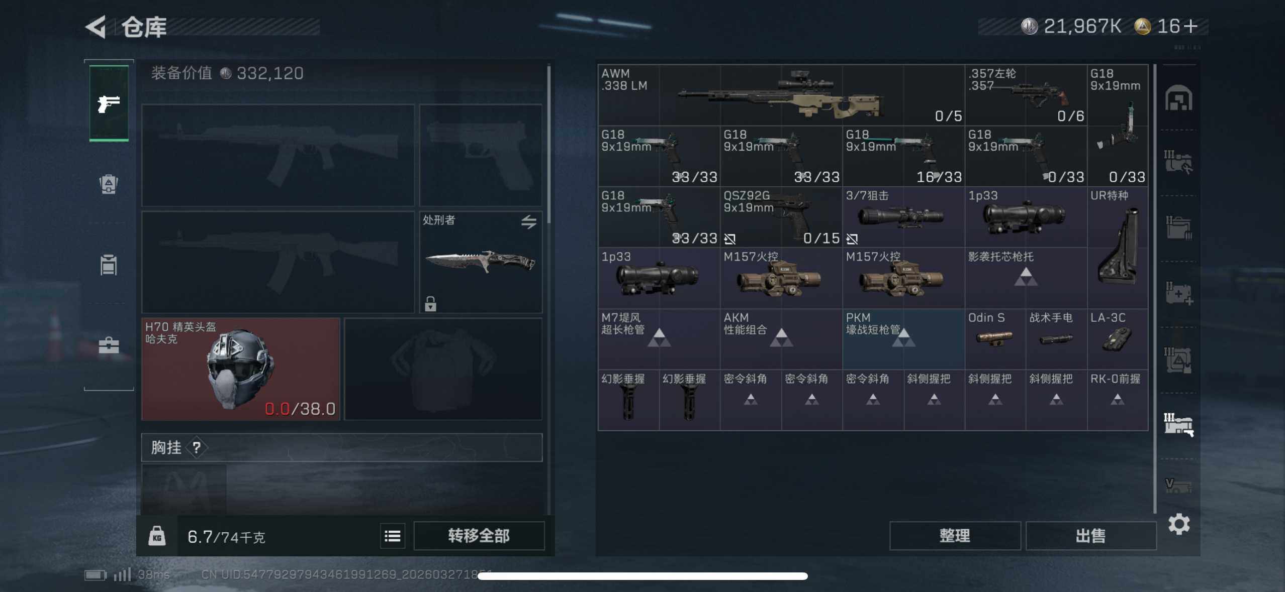 【SJZQH1474】总资产(M):133M/哈夫币(K):21967K/哈夫币(K):21967K/传说枪皮数:8/全面战场等级:15_段位:上等兵/烽火地带等级:53_段位:钻石/威龙-凌霄戍卫/蛊-不羁人生/近战-处刑者1级/近战-黑鹰/QBZ95-1突击步枪-凌霄戍卫/SG552突击步枪-点翠/腾龙突击步枪-万金泪冠/KC17突击步枪-点翠/勇士冲锋枪-万金泪冠/M14射手步枪-蛮荒/PSG-1射手步枪-点翠/AWM狙击步枪-万金泪冠/K416突击步枪-腊梅/SCAR-H战斗步枪-囚徒/