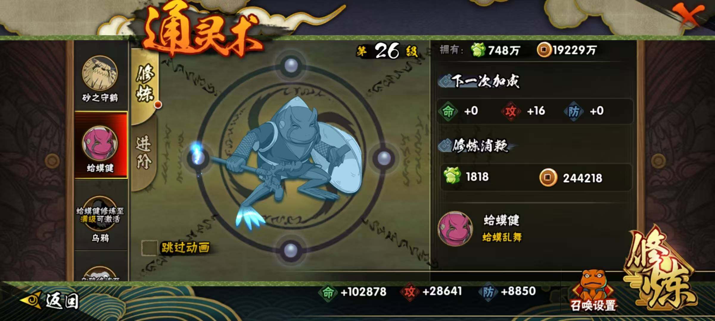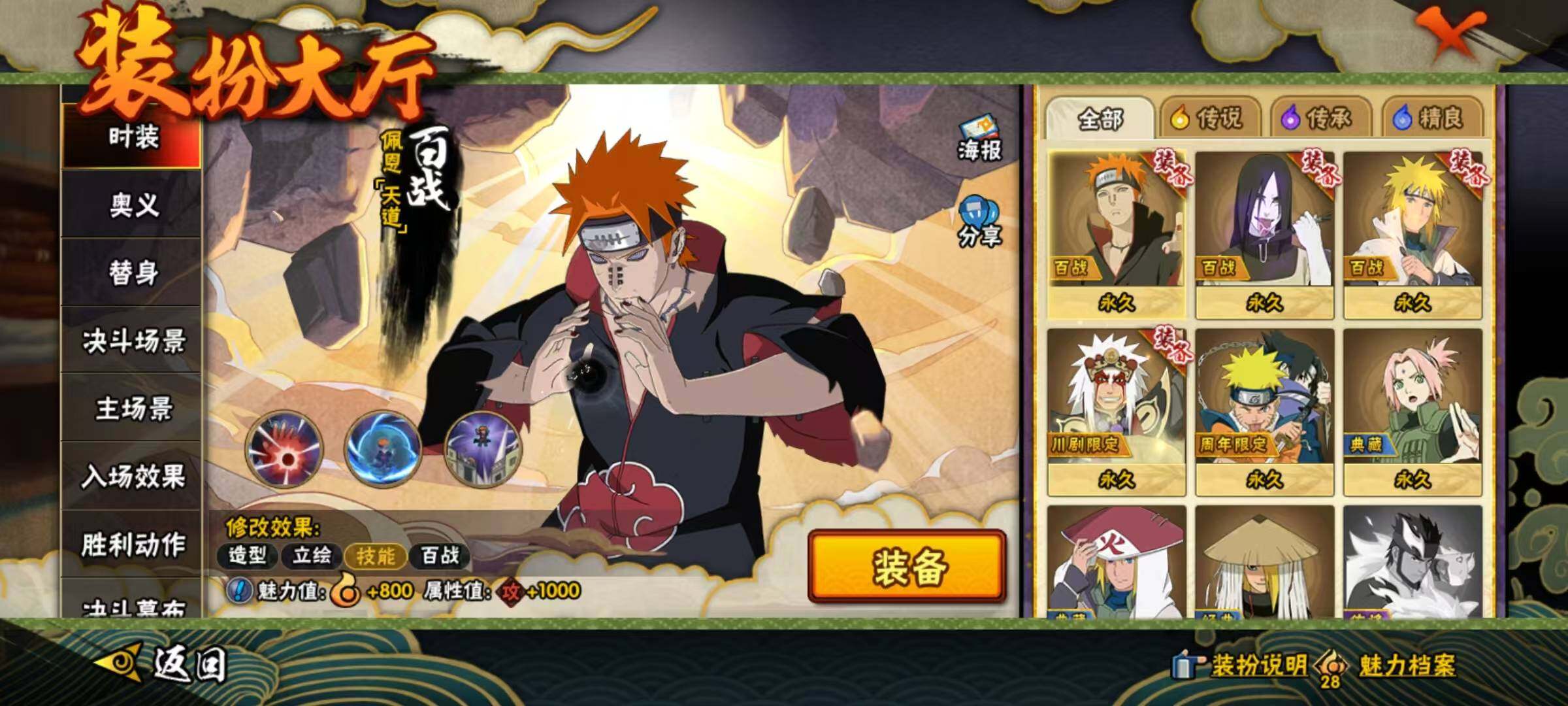 【S级忍者】:千手柱间「秽土转生」(3星),旗木卡卡西「须佐能乎」(3星),自来也「舞之豪杰」(3星),大蛇丸(3星),波风水门(3星),迈特凯「死门」(3星),佩恩「天道」(3星),漩涡鸣人·宇智波佐助(3星)
