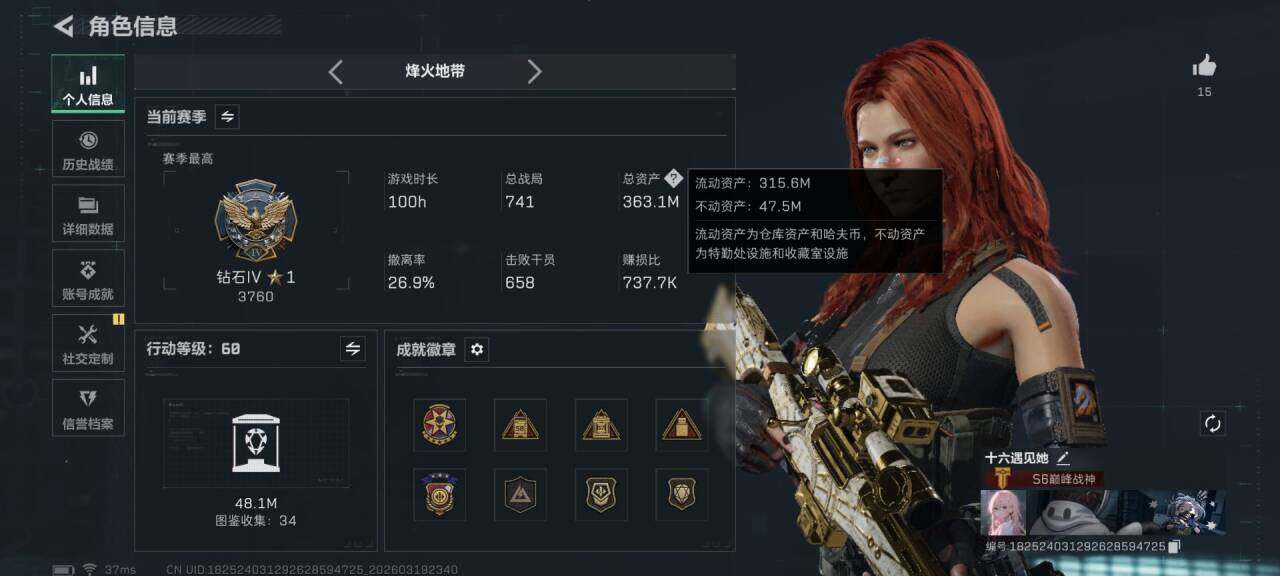 363m总资产-102444k哈夫币-60烽火等级-钻石-50战场等级-军士长