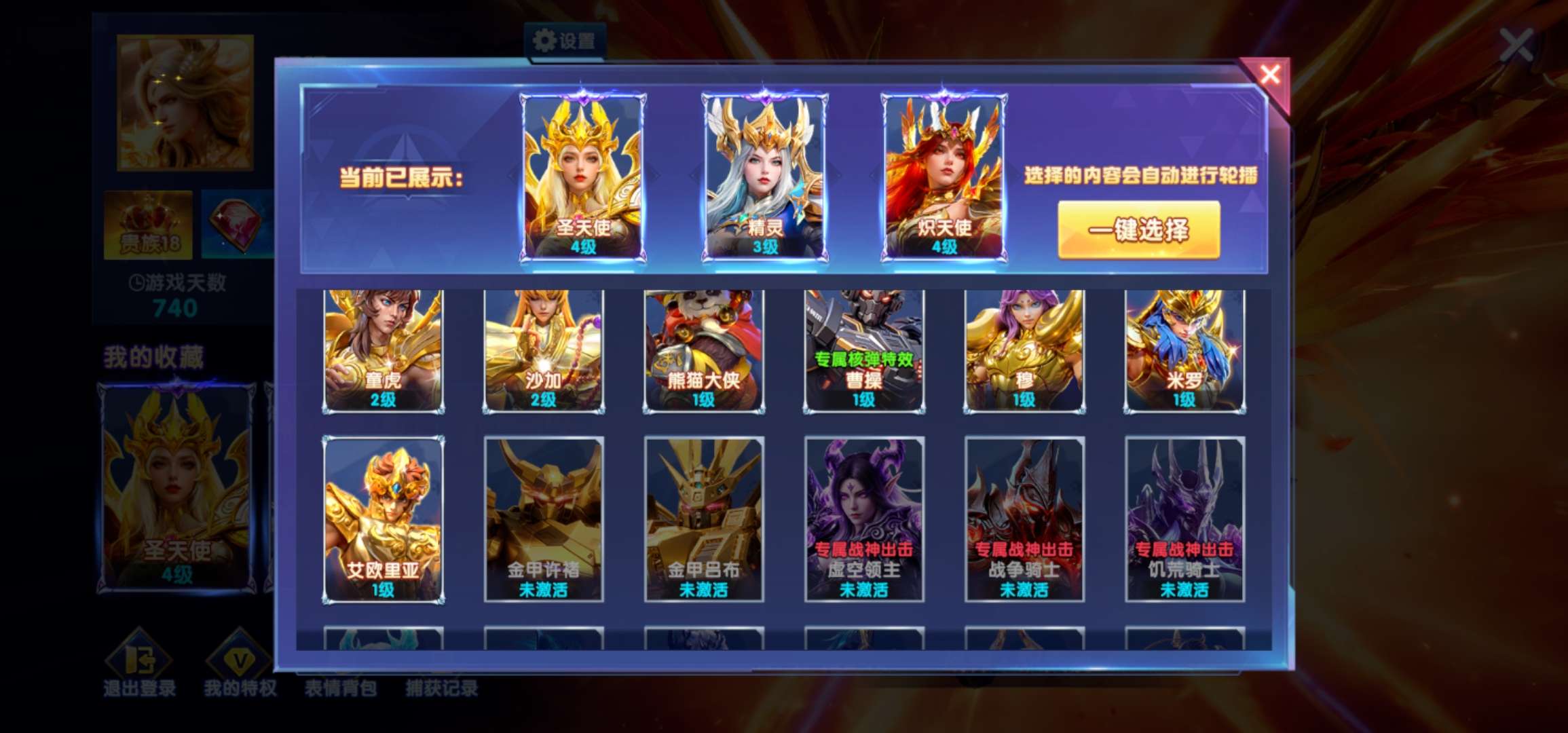 华为V18 ,特权11,救济1.2+ 10套。技能齐全。神卫差2碎片满级