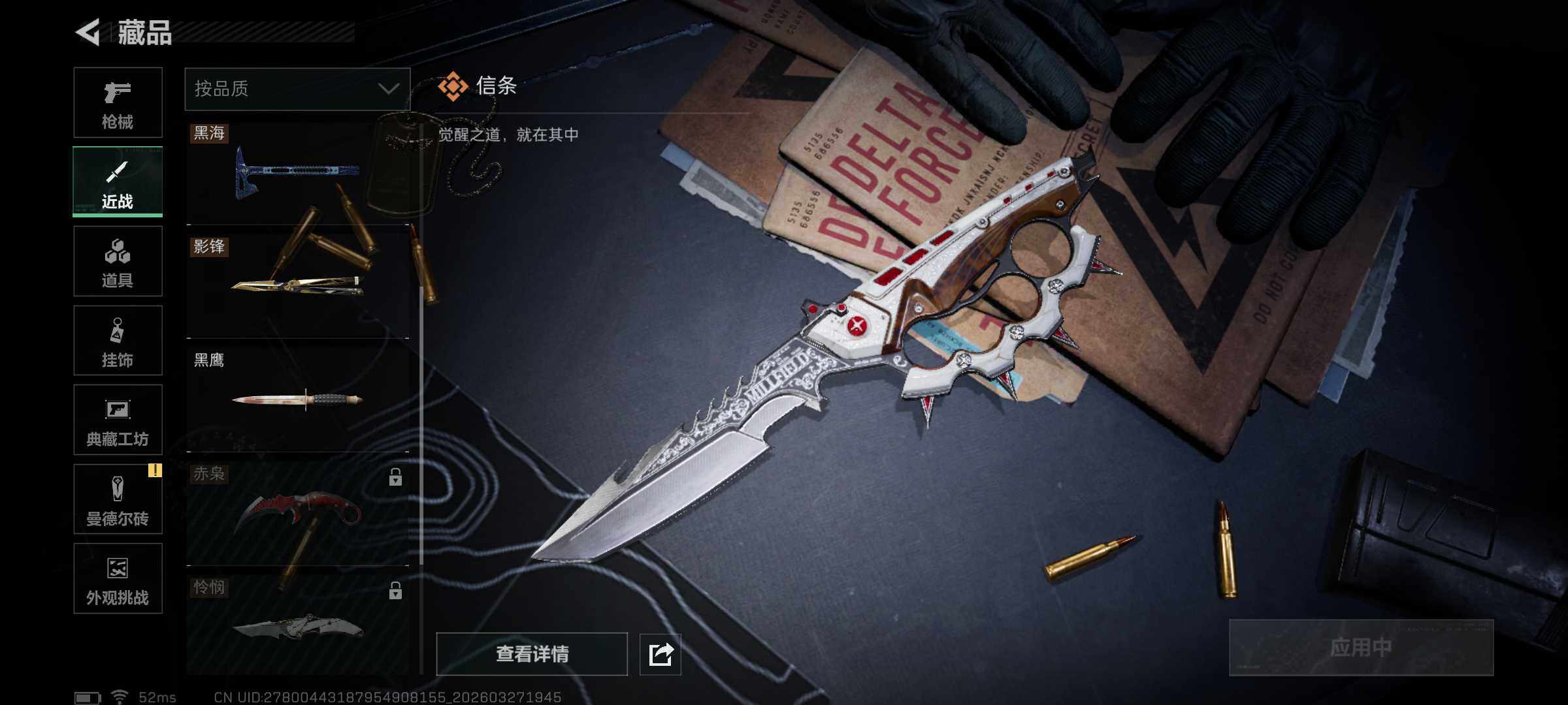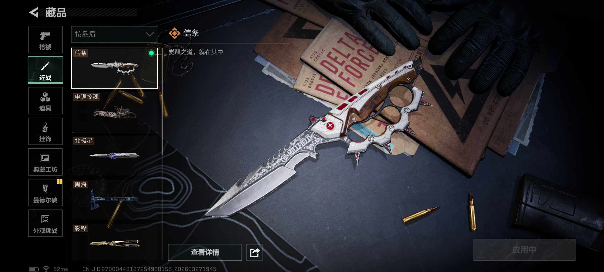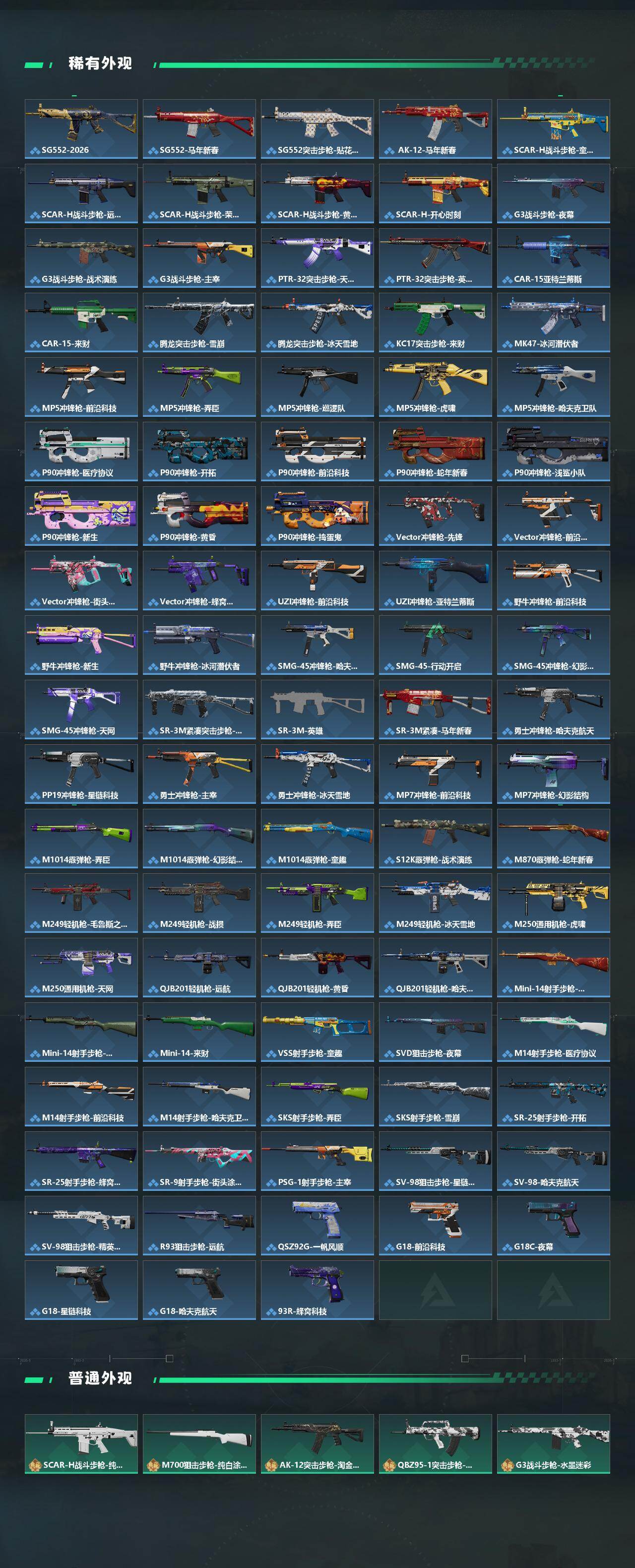 【近战皮肤】:近战-北极星,近战-信条,近战-黑海,近战-影锋,近战-电锯惊魂,近战-黑鹰