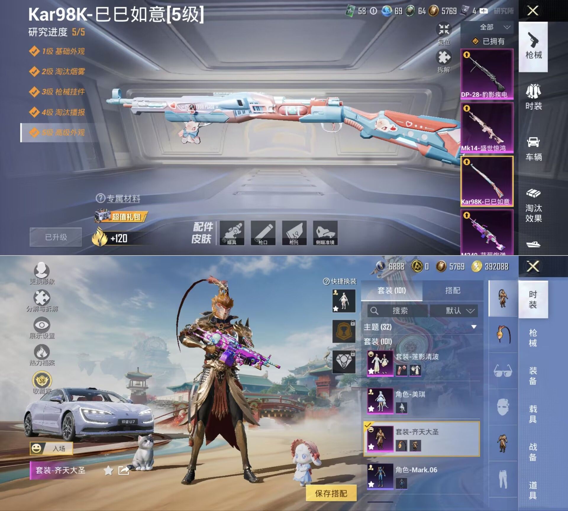 M1047277【1载具-1神装-6粉装-4特效枪 盛世惊鸿-云鸾[2级]】无二次包 安卓手Q-1载具-1神装-6粉装-4特效枪-101套装-172枪皮-4王牌印记-坚韧铂金Ⅱ-52777热力值【1载具】仰望U7(阿盖尔紫)【1神装】盛世惊鸿-云鸾[2级]【6粉装】齐天大圣,角色-伏羲圣卦,角色-千金淑猫,莲影清波,角色-玄冥寒域,角色-美琪【4特效枪】M249-蓝莓炮弹[7级],Kar98K-巳巳如意[5级],DP-28-豹影疾电[4级],Mk14-盛世惊鸿[3级]【5飞行器】千面幻镜飞行器,