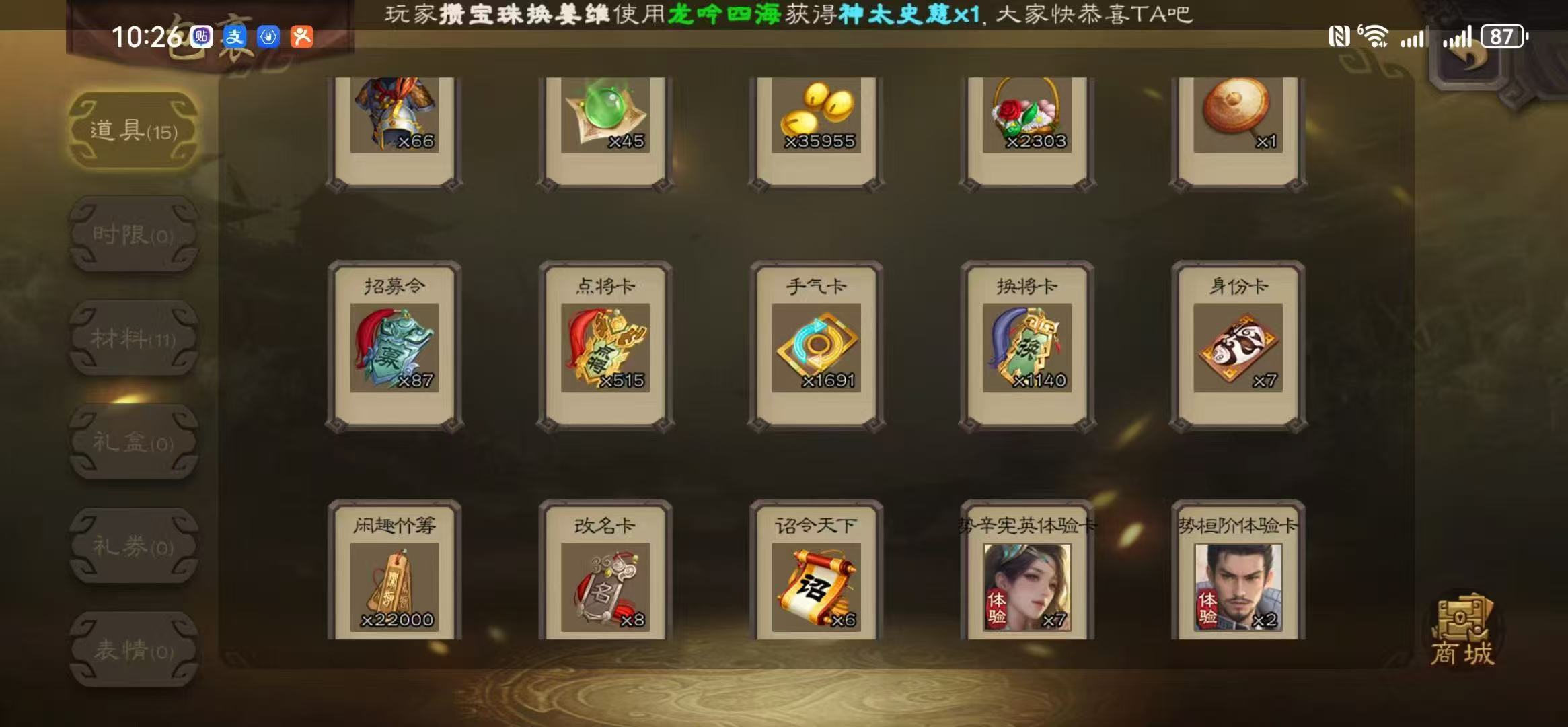 卡66将5连体势魏延神太史慈白马董允界黄忠超级士兵,153甲令三卡豆子特别多,官方字母开头账号,账号无绑定登录