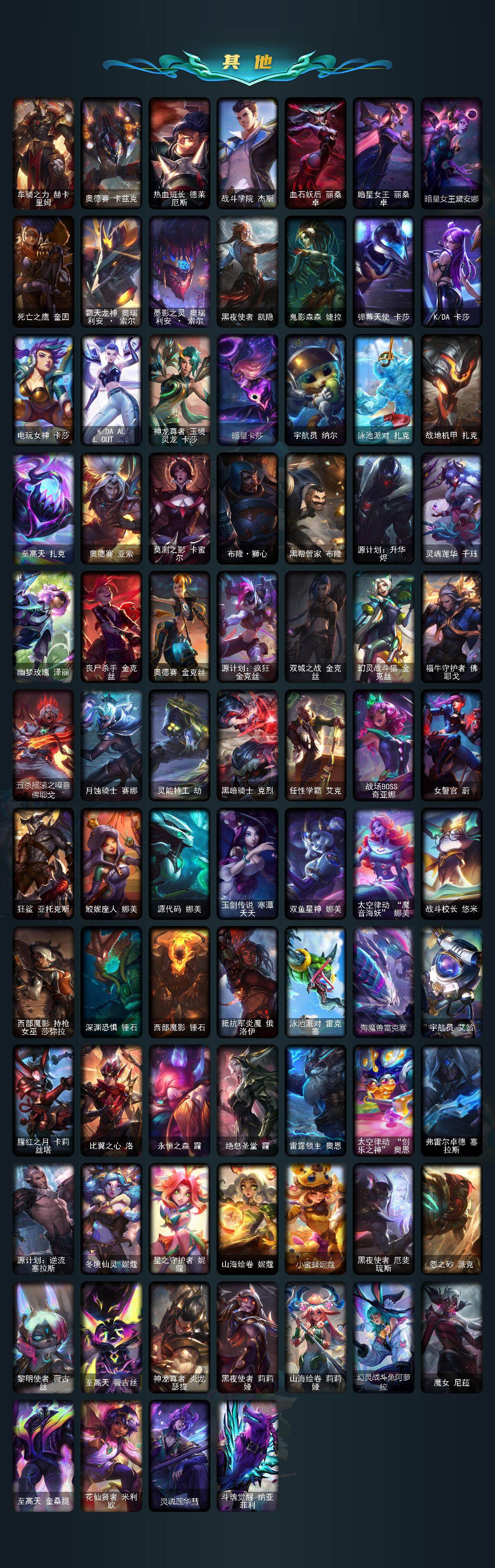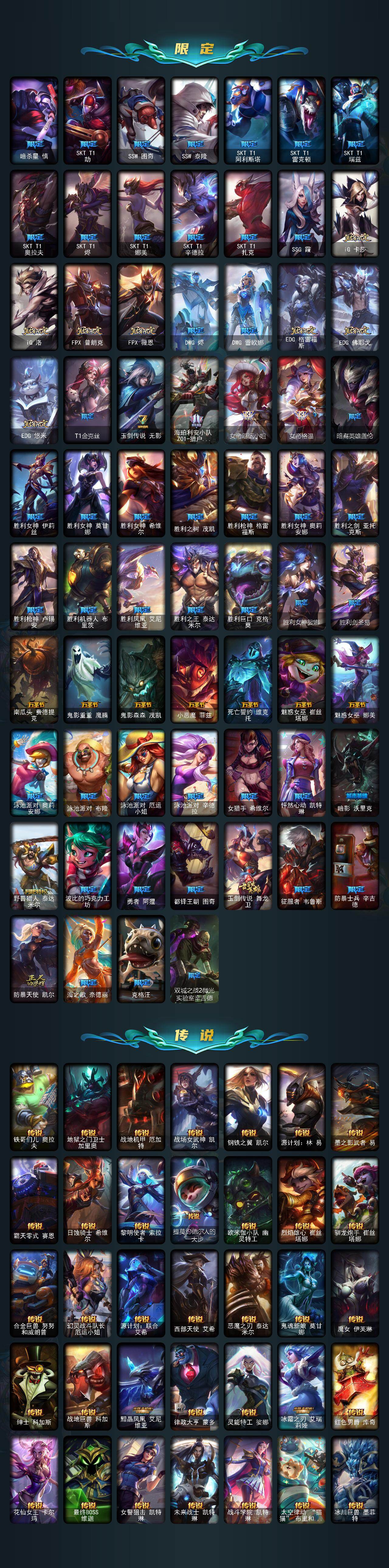 【神话皮肤】:十周年纪念安妮,源代码乐芙兰,殿堂传奇乐芙兰,十五周年纪念希维尔,神凰行者瑞羽圣凰艾尼维亚,黎明使者卡尔玛,灰烬骑士派克