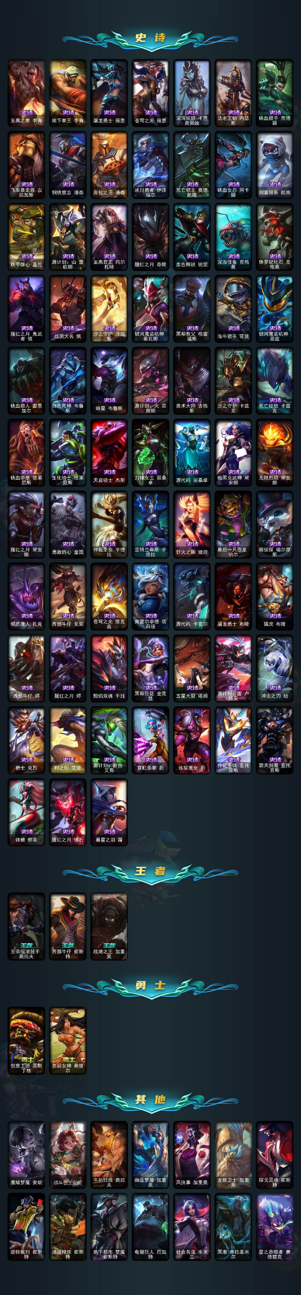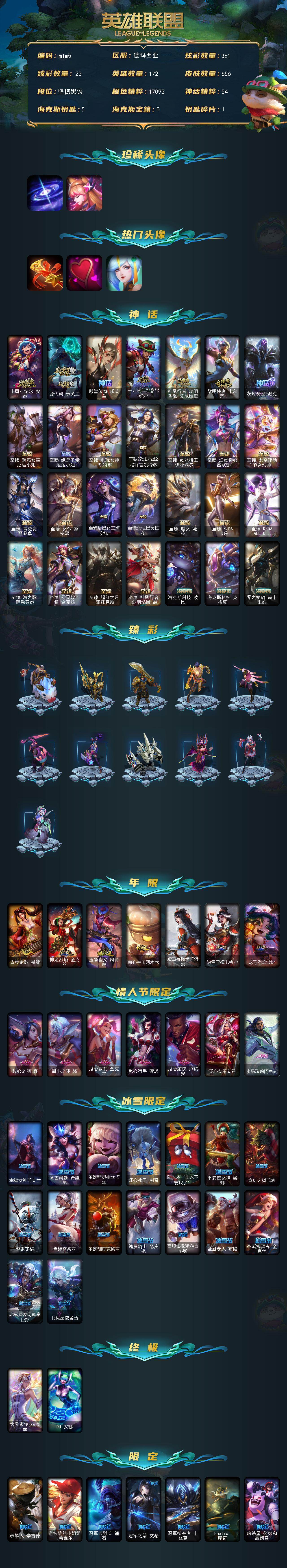 【mlm5】未定级段位-172英雄-656皮肤-361炫彩-2终极-28神话-105限定-75传说-136史诗