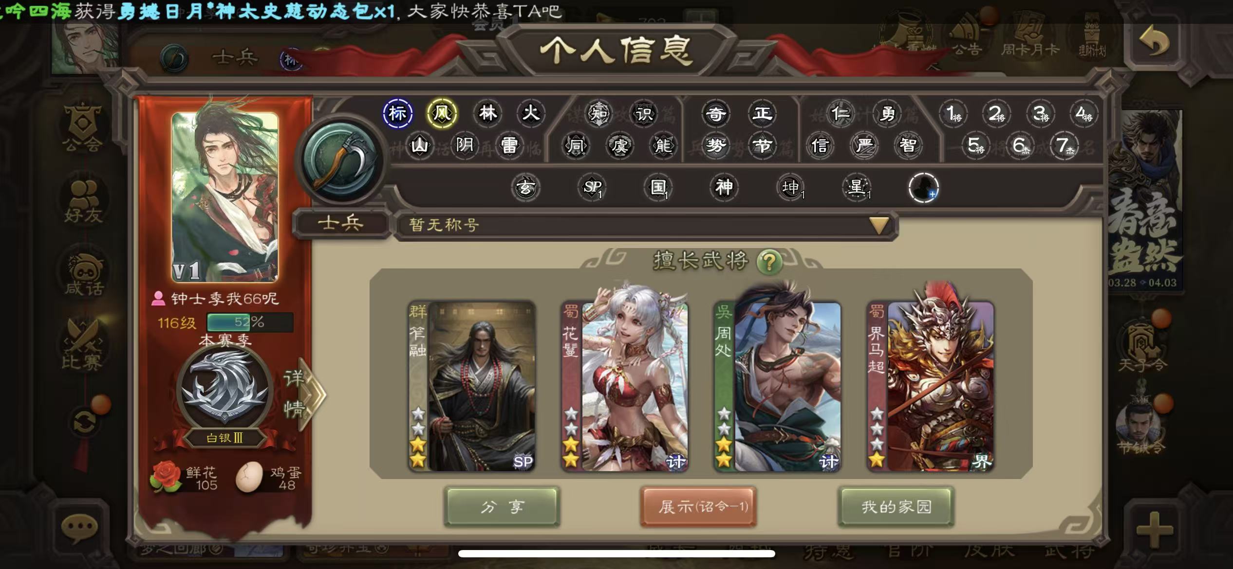 士兵笮融周处花花70招募令3500将魂4万羽毛三卡