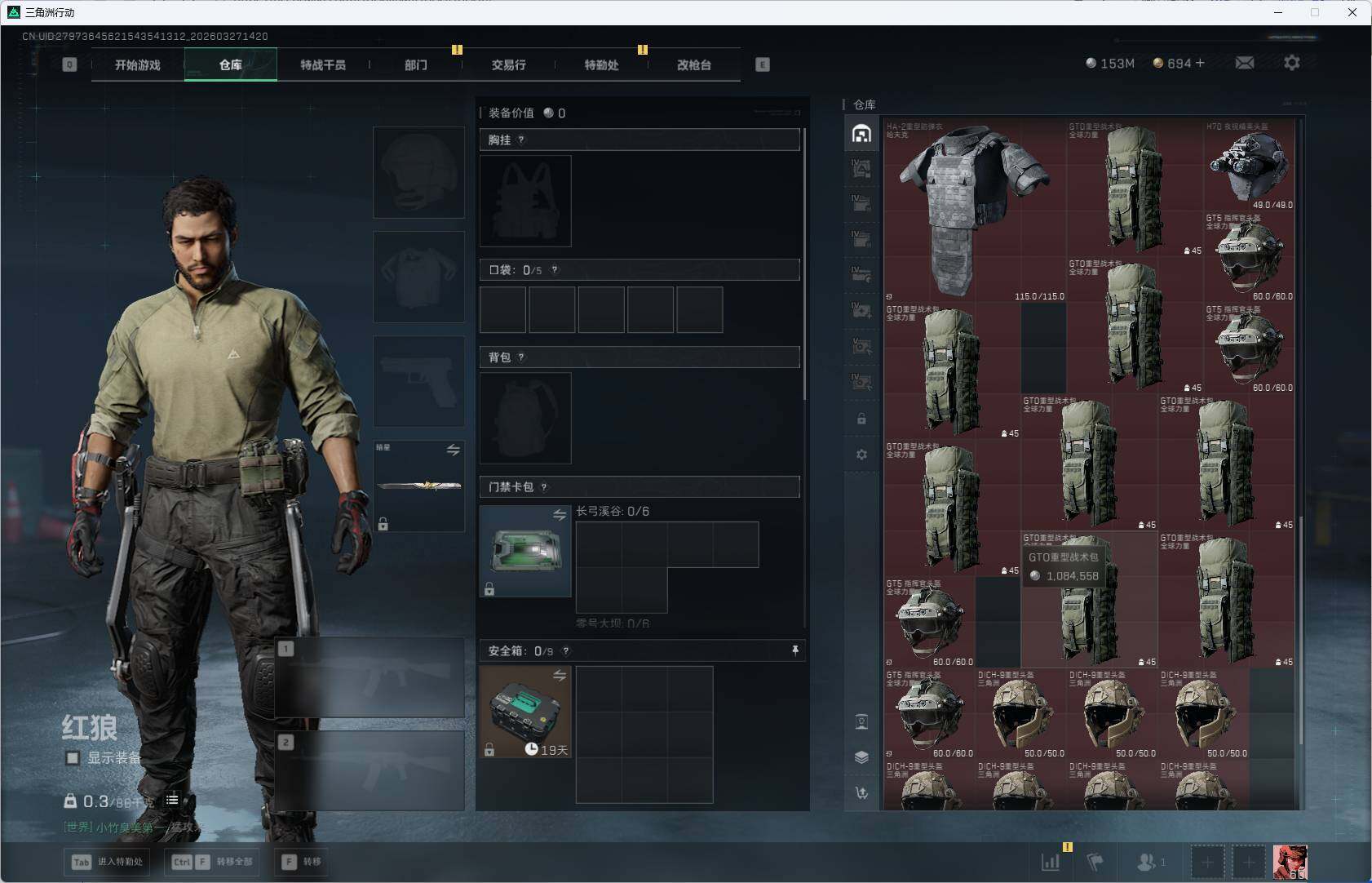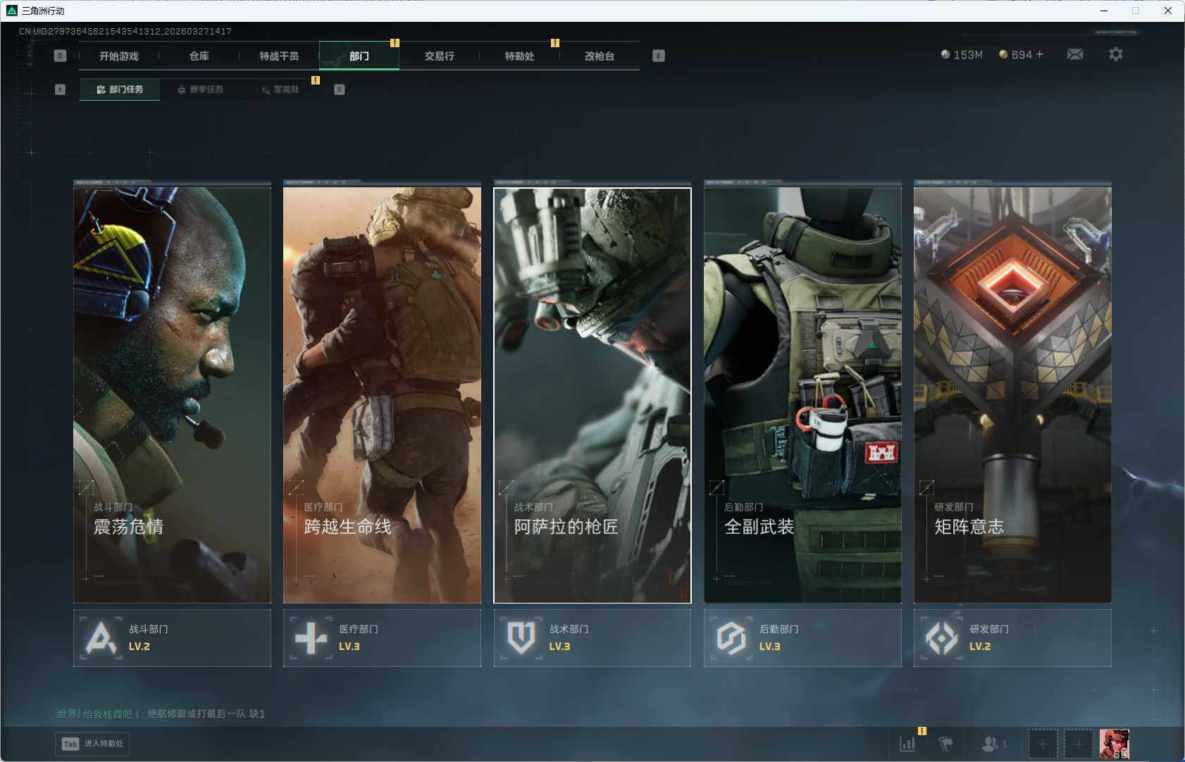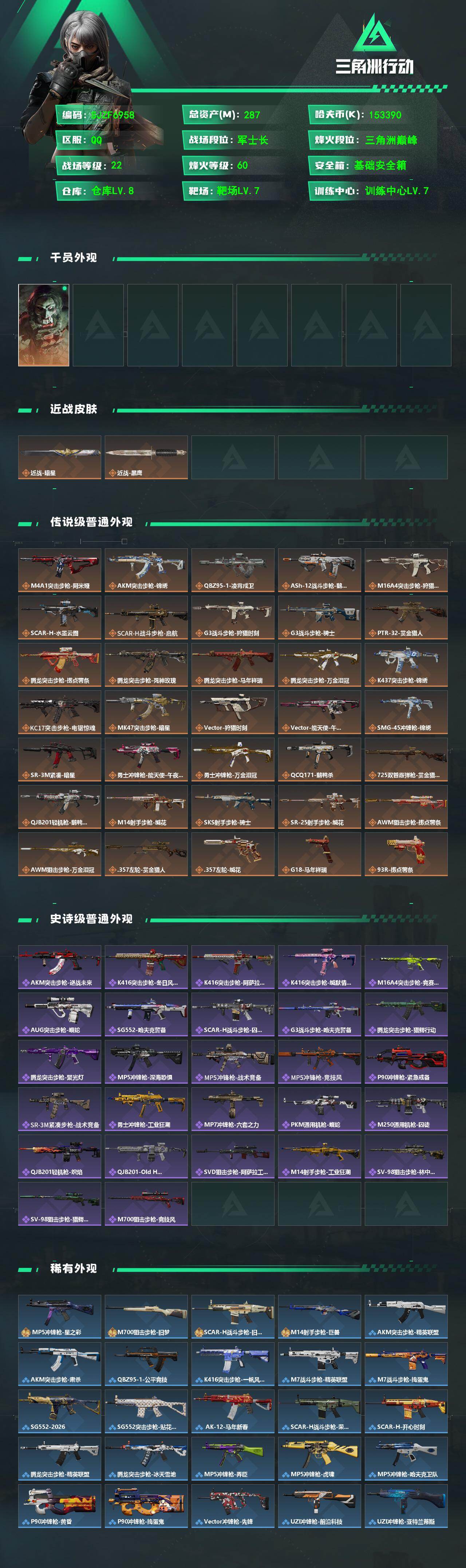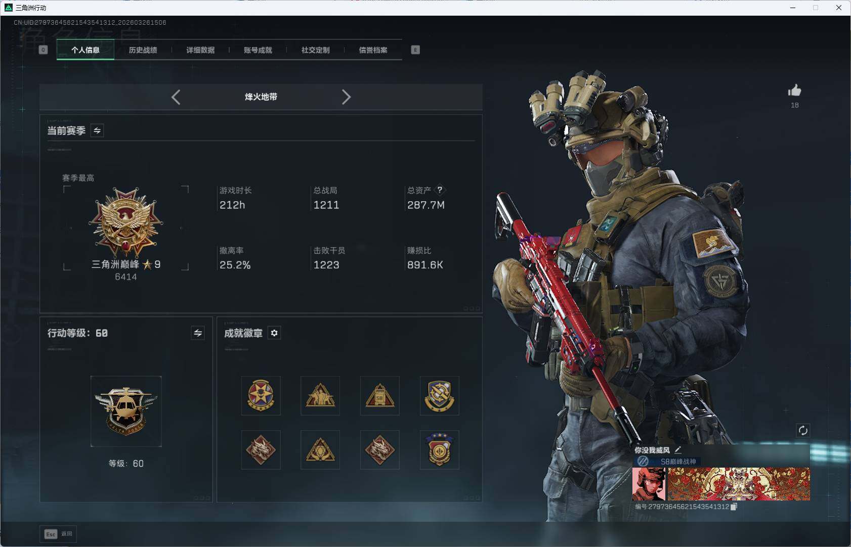 287m总资产-153390k哈夫币-60烽火等级-三角洲巅峰-22战场等级-军士长