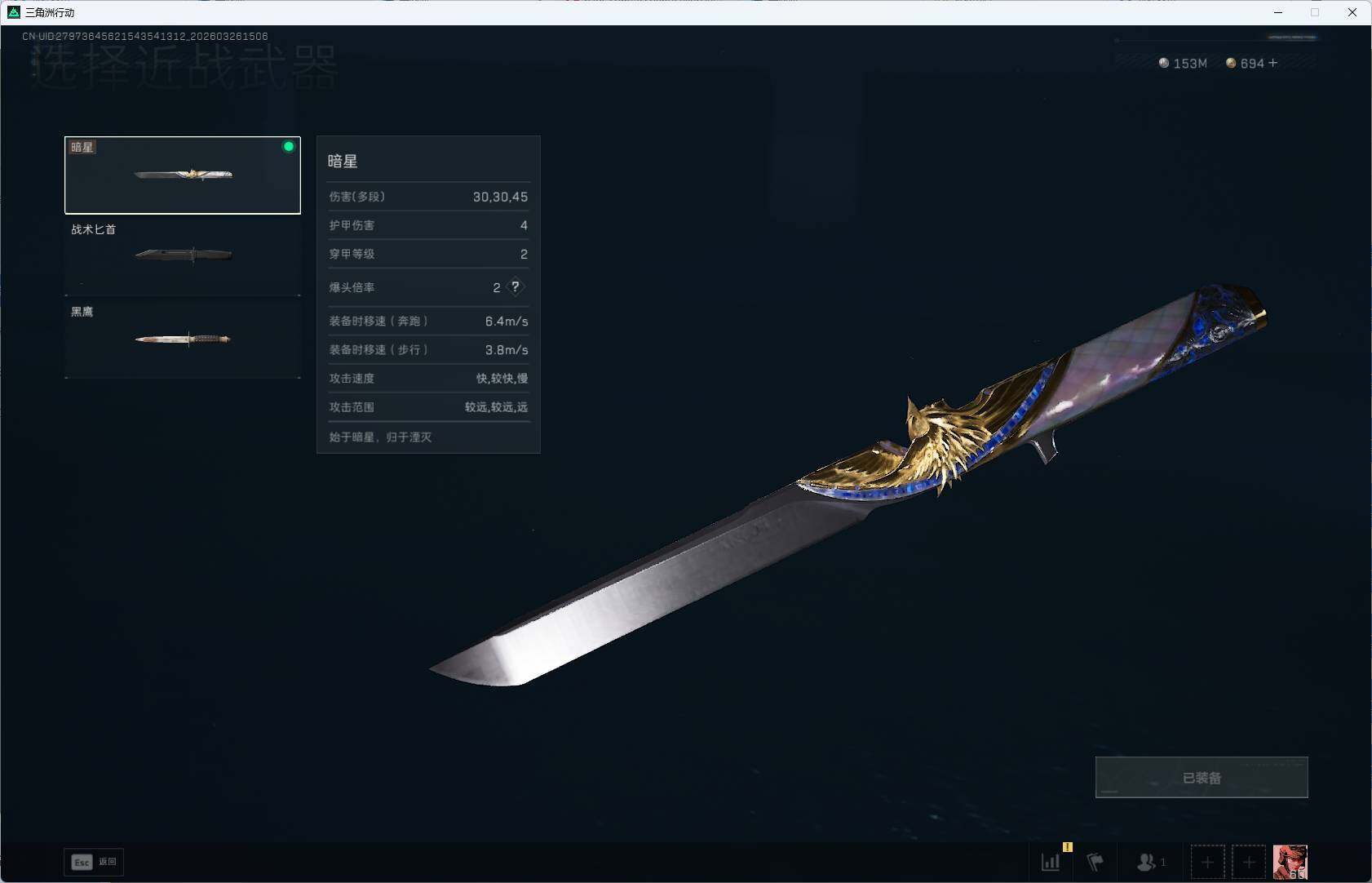 【近战皮肤】:近战-暗星,近战-黑鹰