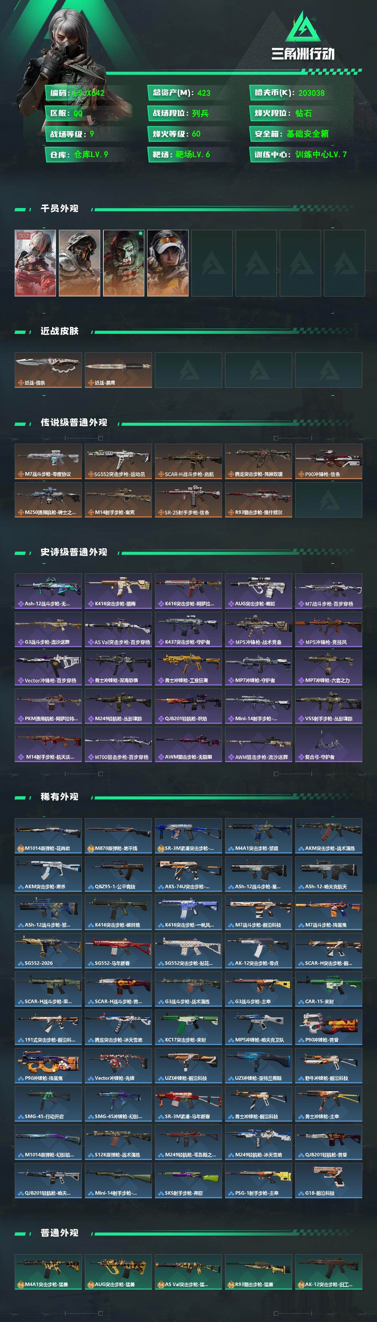 423m总资产-203038k哈夫币-60烽火等级-钻石-9战场等级-列兵