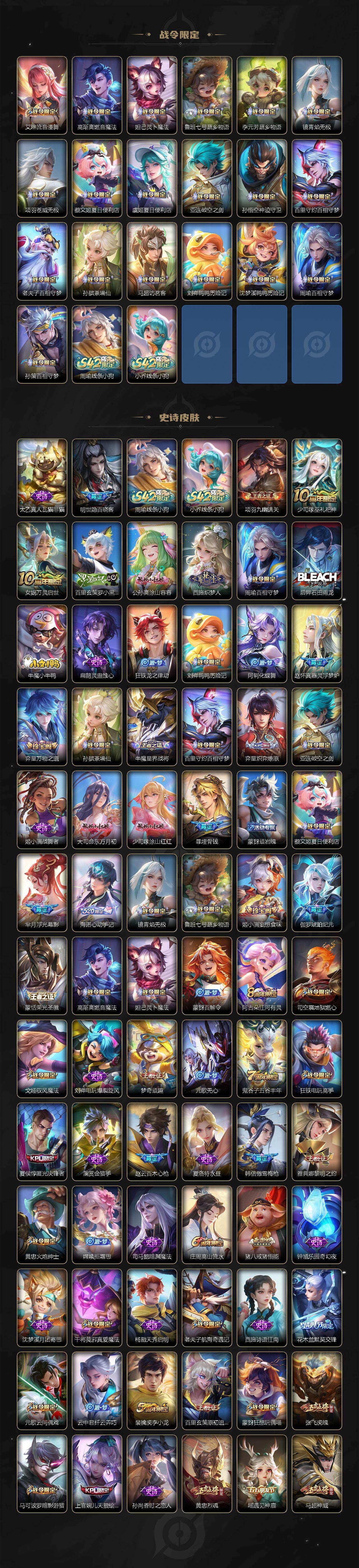 【16776421】安卓Q-V10-最强王者段位-129英雄-485皮肤-3典藏皮肤-1典藏英雄-3无双-8珍品传说-47传说-148史诗