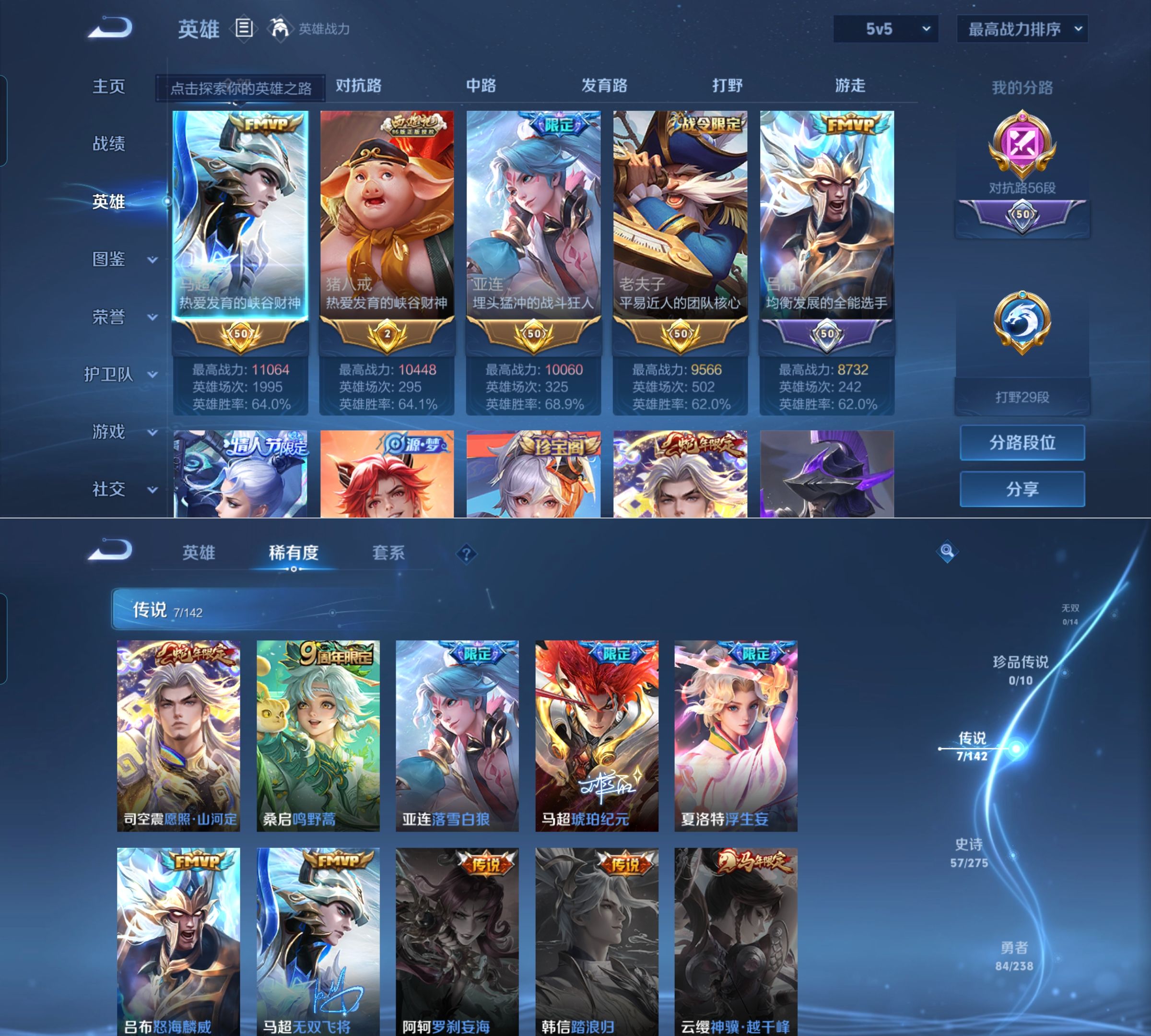 巅峰对抗路56段 省标马超v6 英雄128 皮肤186 传说