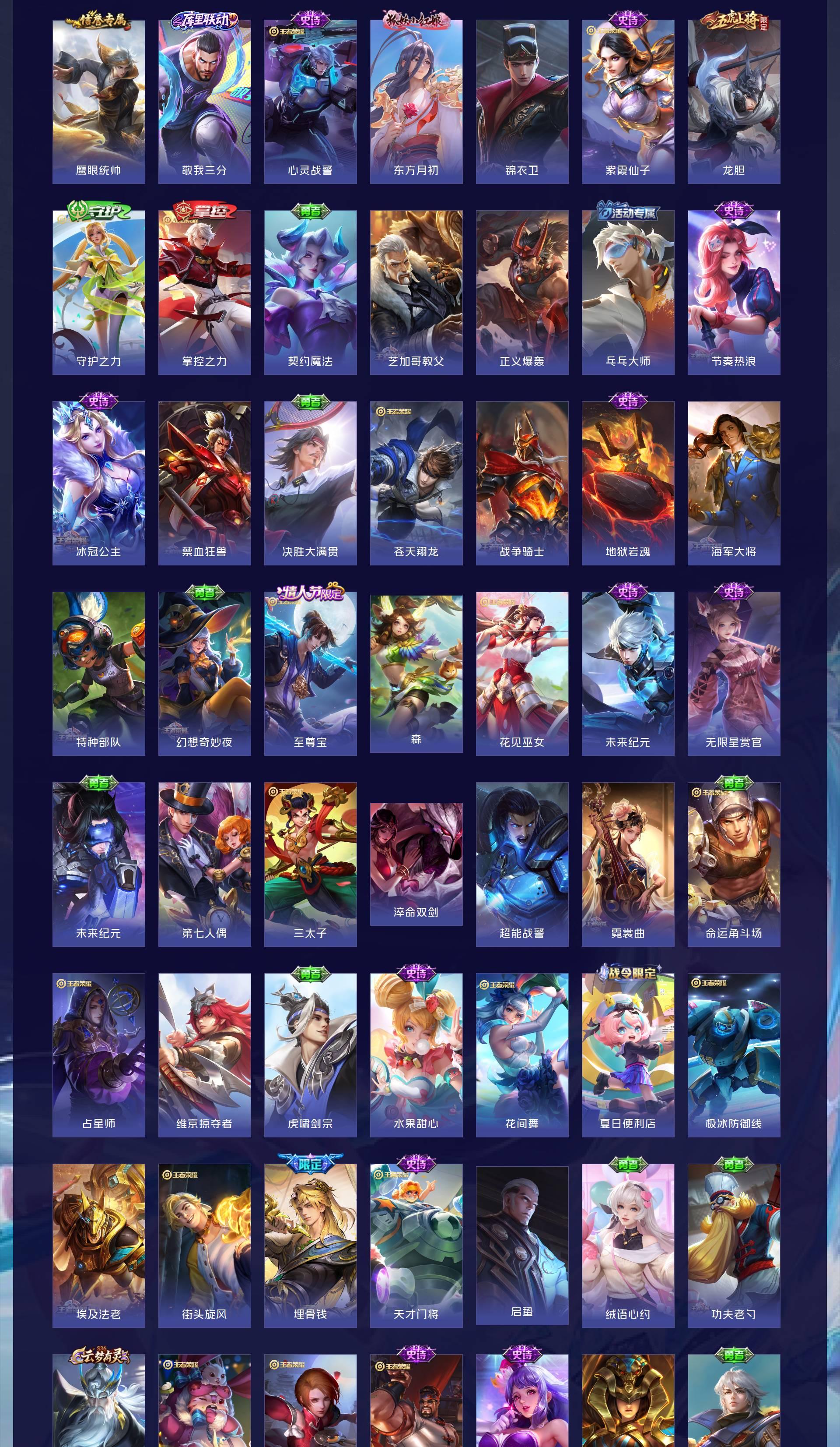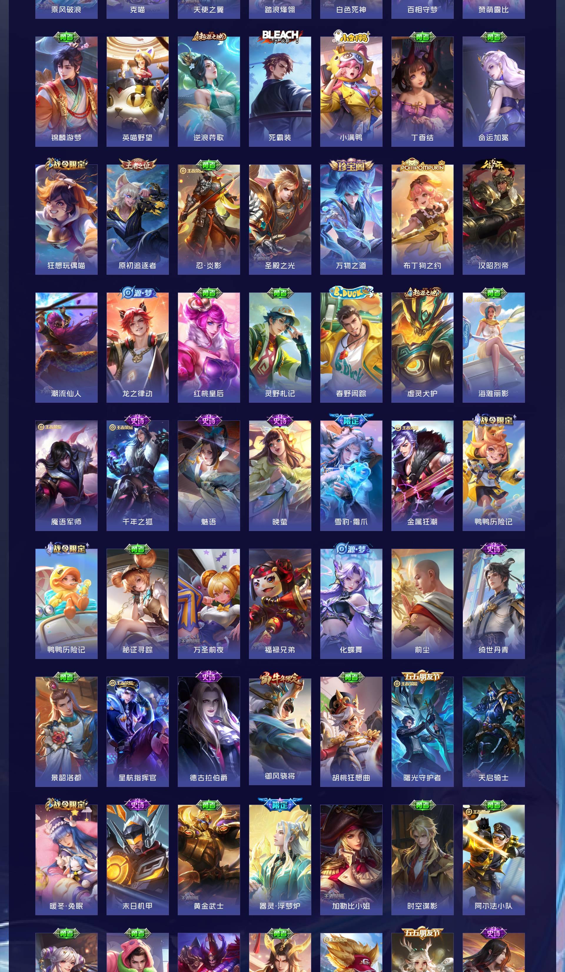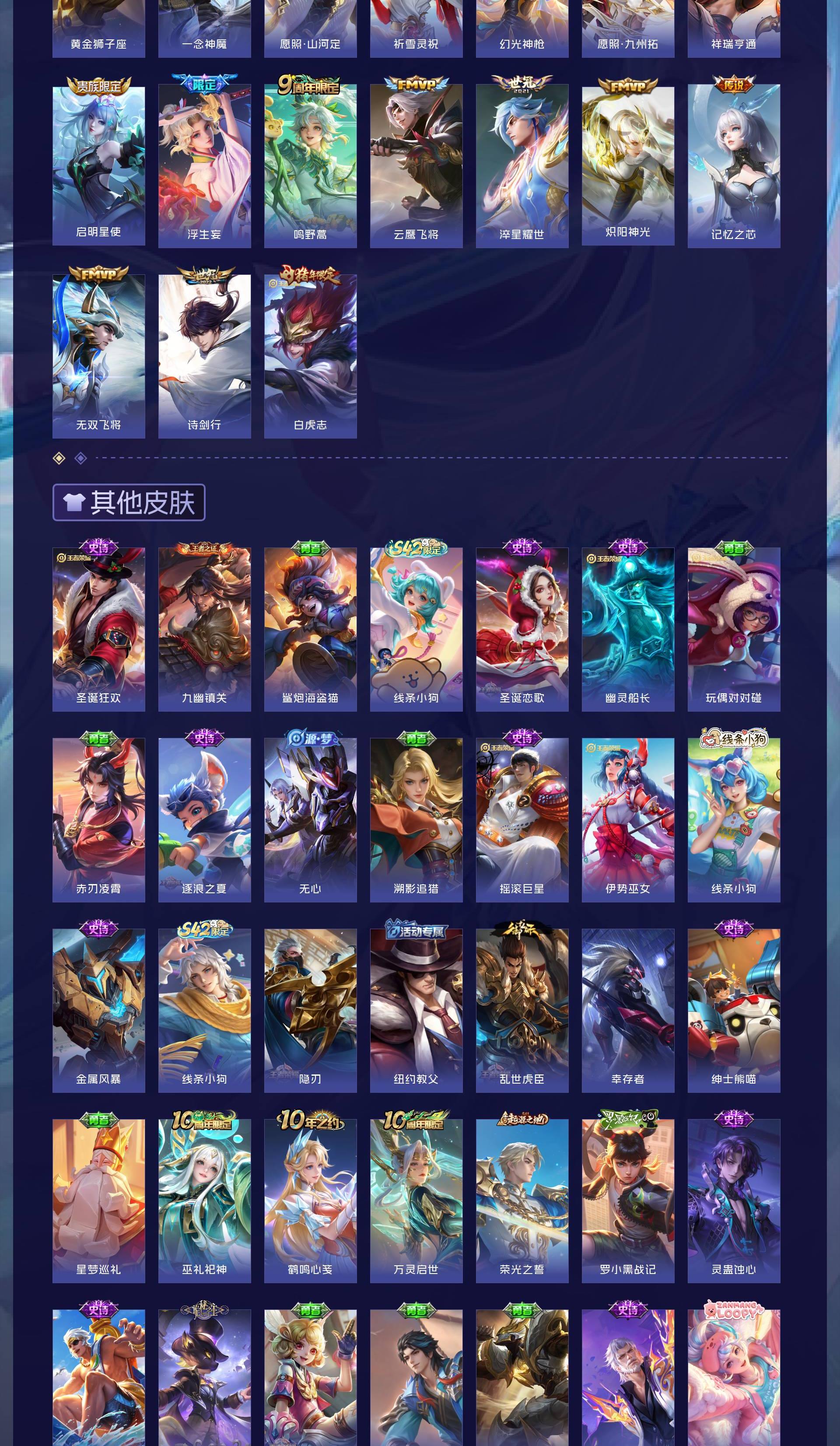V8 皮肤260 英雄128 荣耀王者 荣耀典藏1 无双皮肤1 珍品传说2 星传说2 传说24