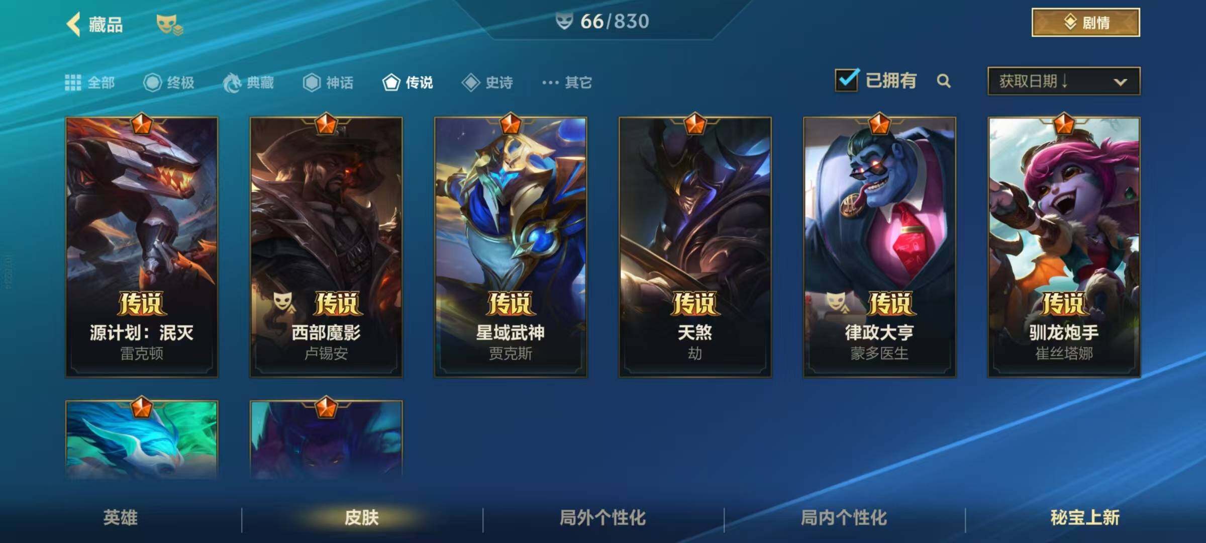 76英雄/66皮肤/8传说/19史诗/流光翡翠/