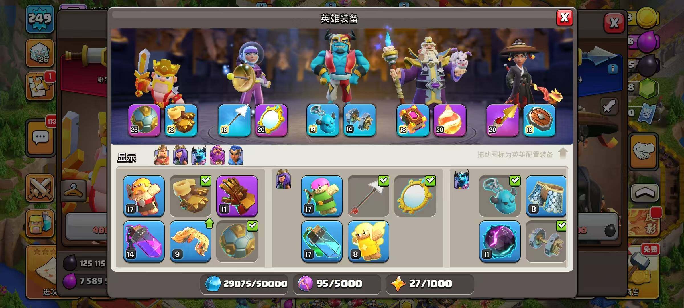 等级249/36王皮/11场景/6农/英雄等级100-100-7