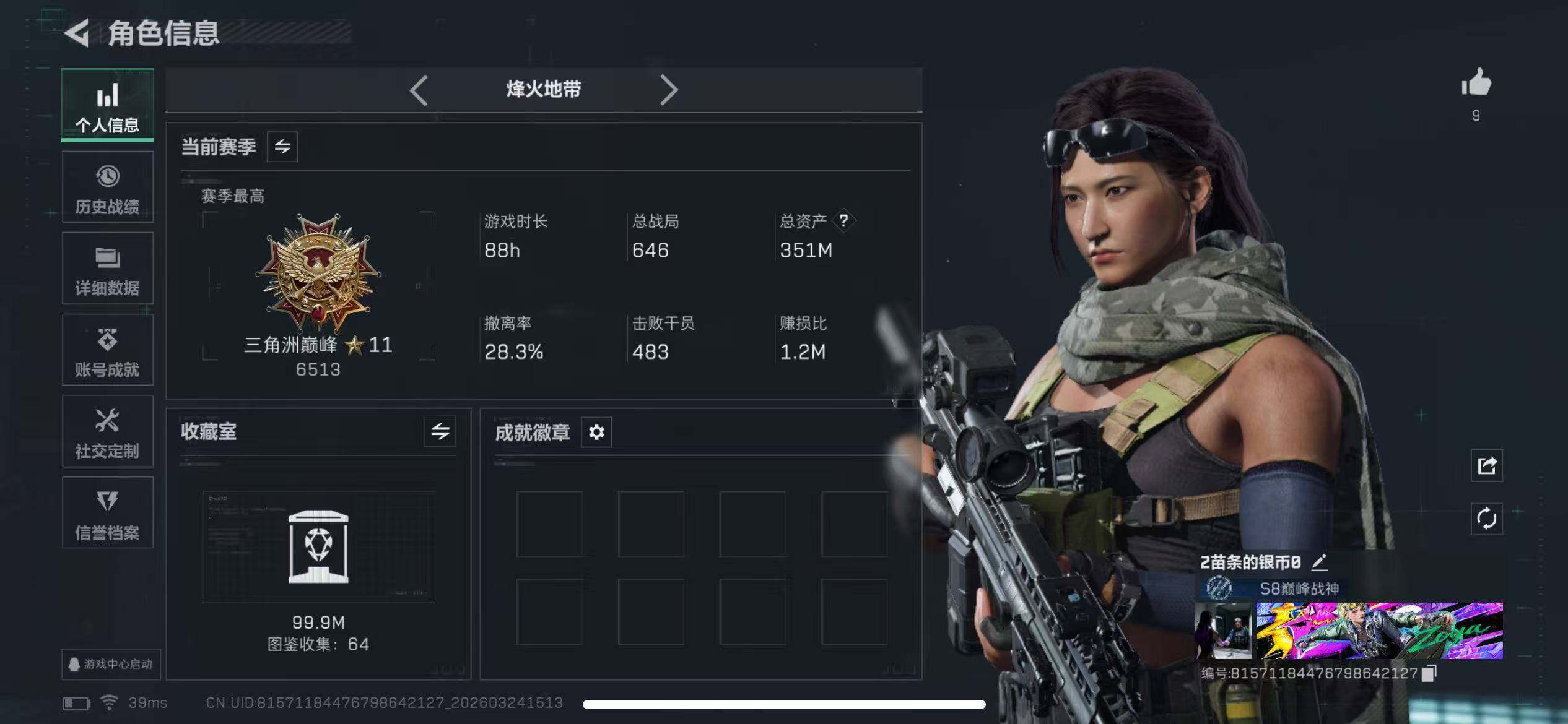 350m总资产-45341k哈夫币-60烽火等级-三角洲巅峰-20战场等级-军士长
