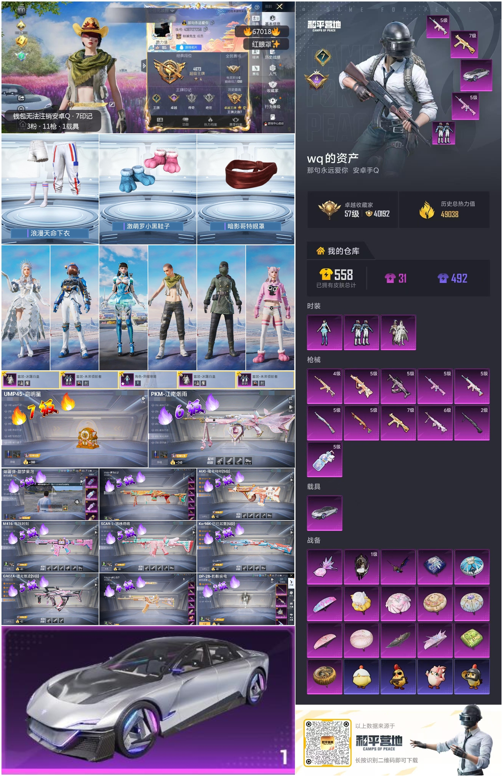 hs67018 安卓手Q-7王牌印记-3粉装-11特效枪-1载具-49038热力值-100套装-157枪皮-4卓越印记