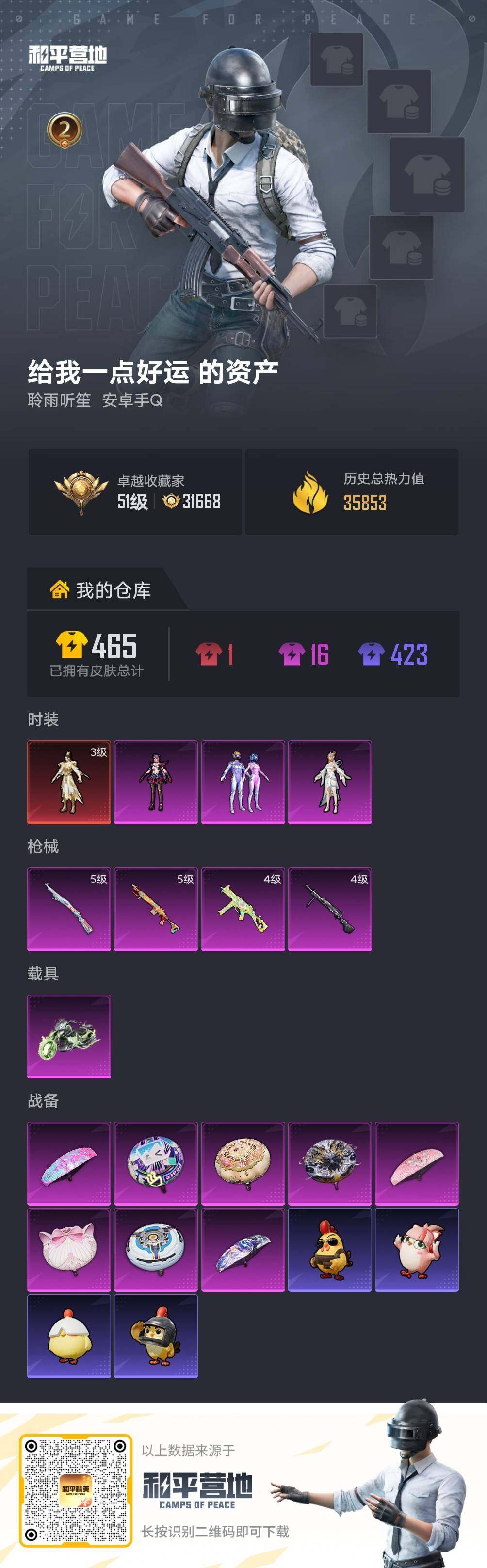 1神装-3粉装-4特效枪-1载具-35853热力值-2王牌印记-72套装-122枪皮