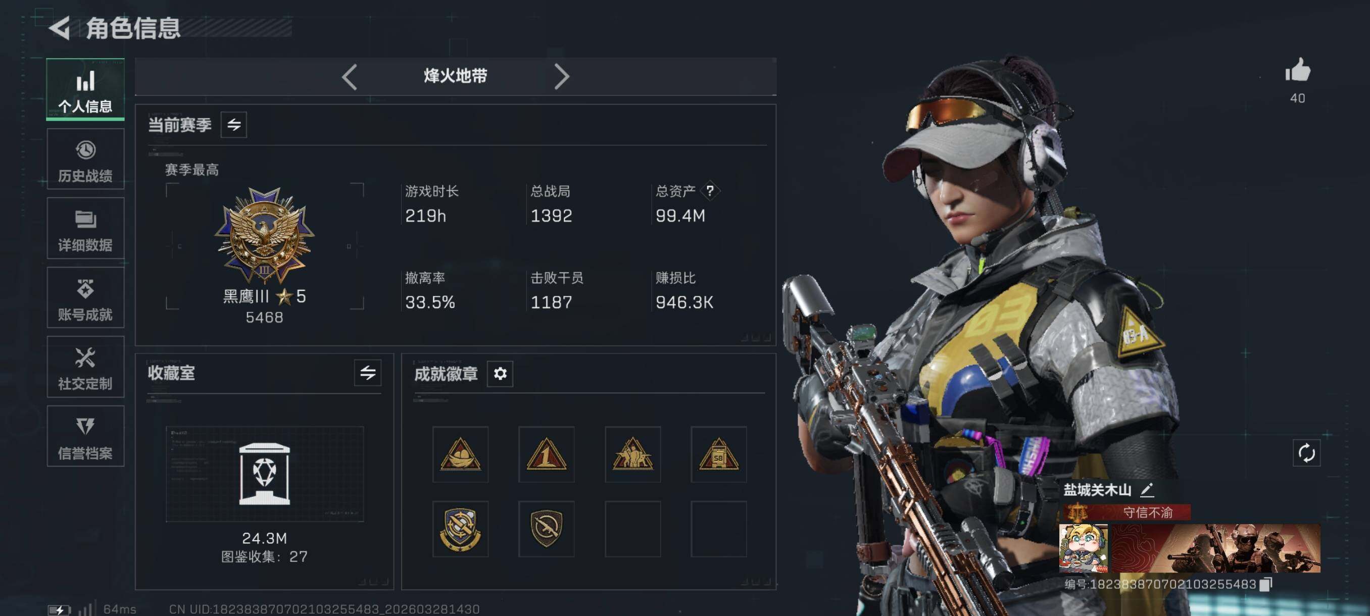 {特价出售}等级:60总资产:99.4M 纯币 9387k 刀皮 暗星 砖皮:优品s 巨浪 特勤处:仓库7,训练7,靶场6