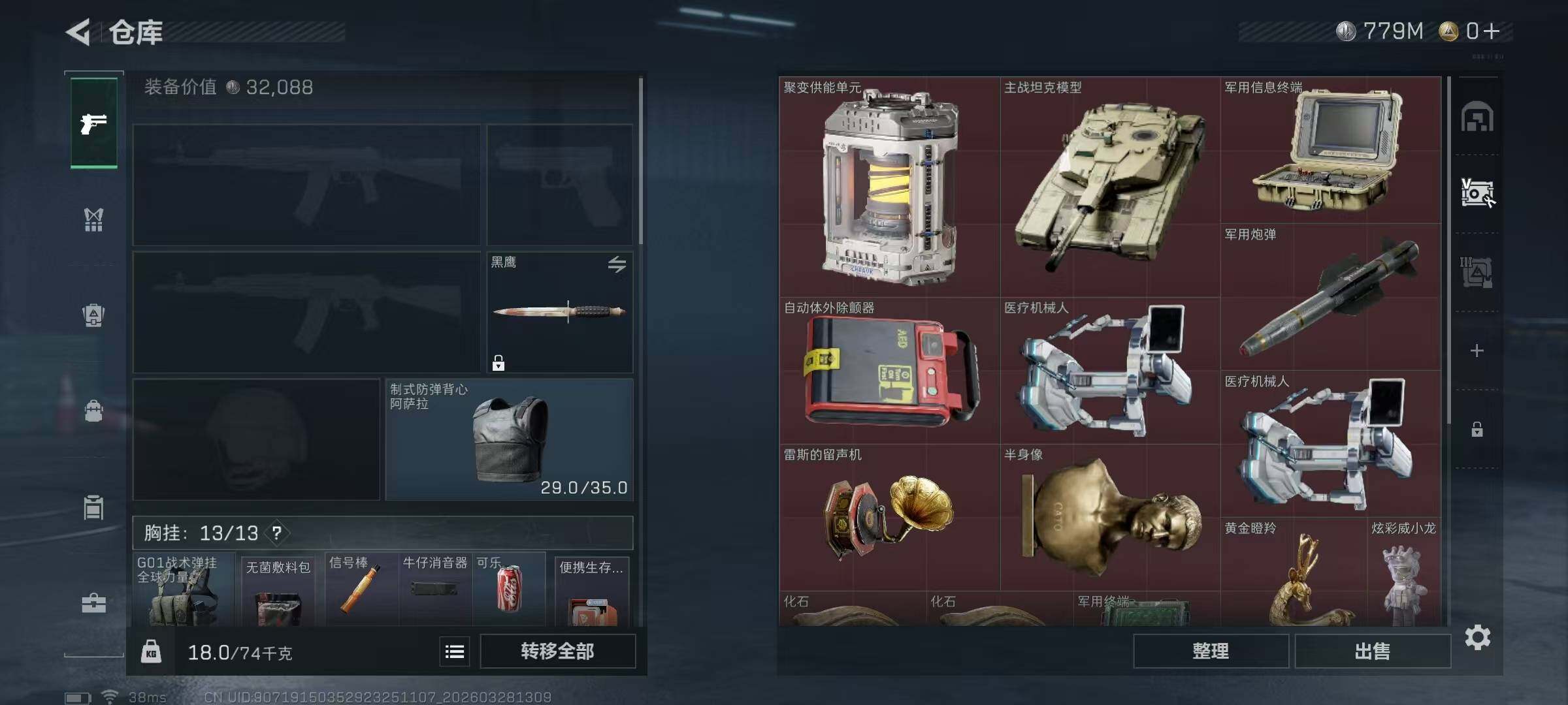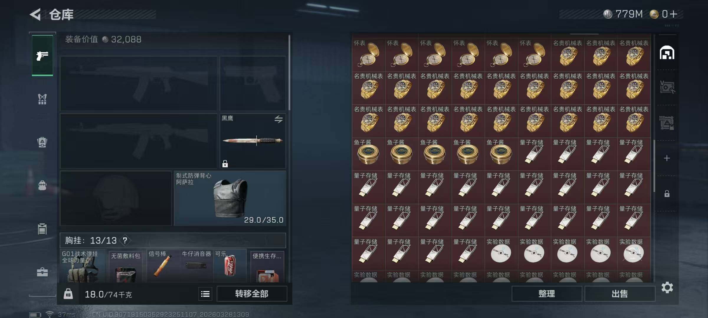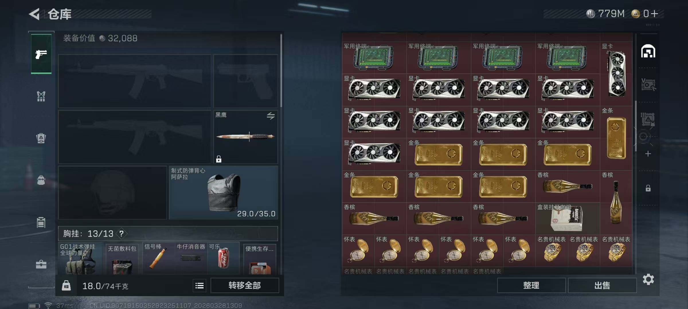 总资产(M):1003M/哈夫币(K):779614K/哈夫