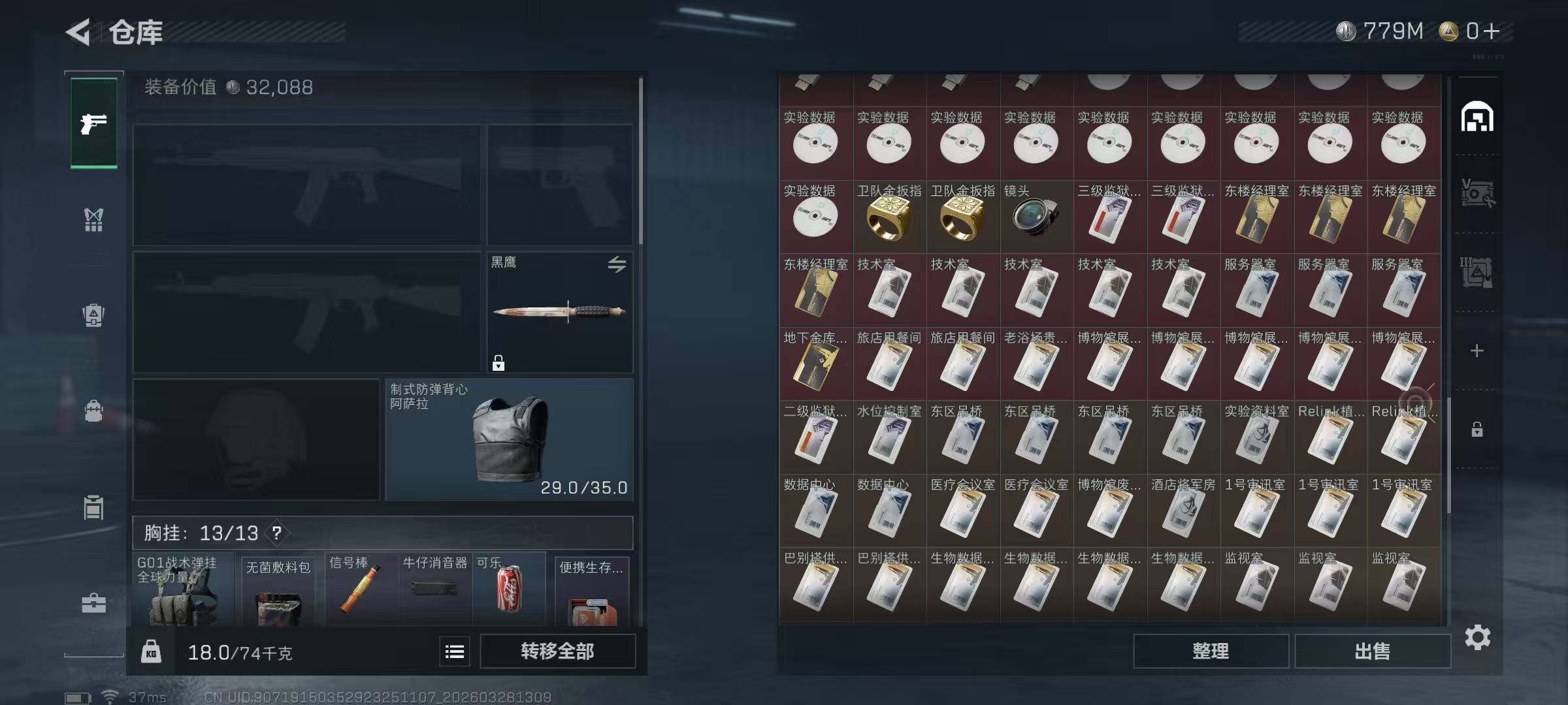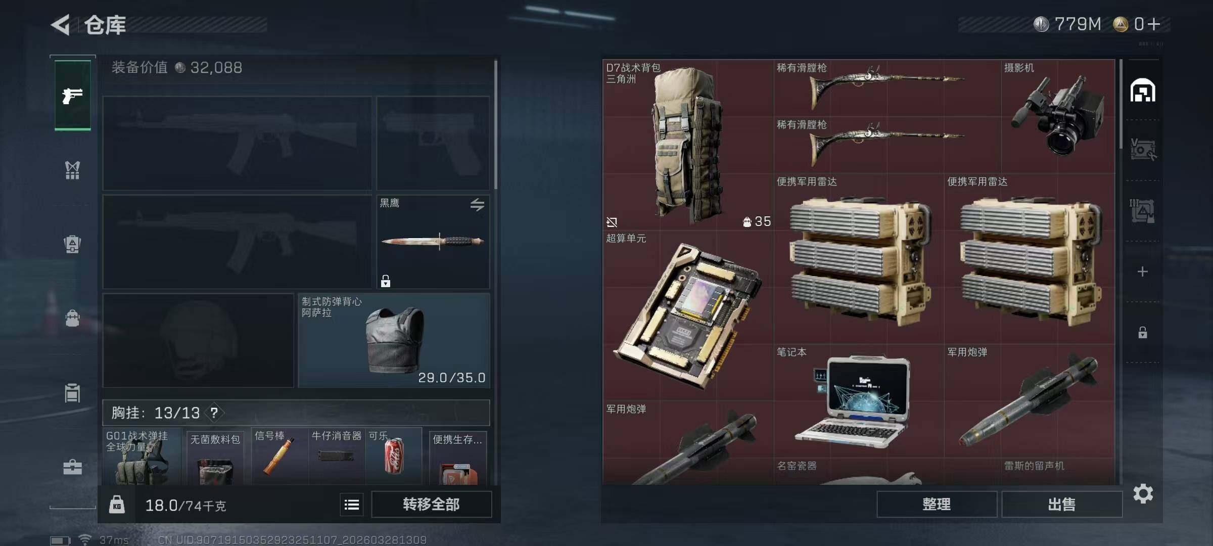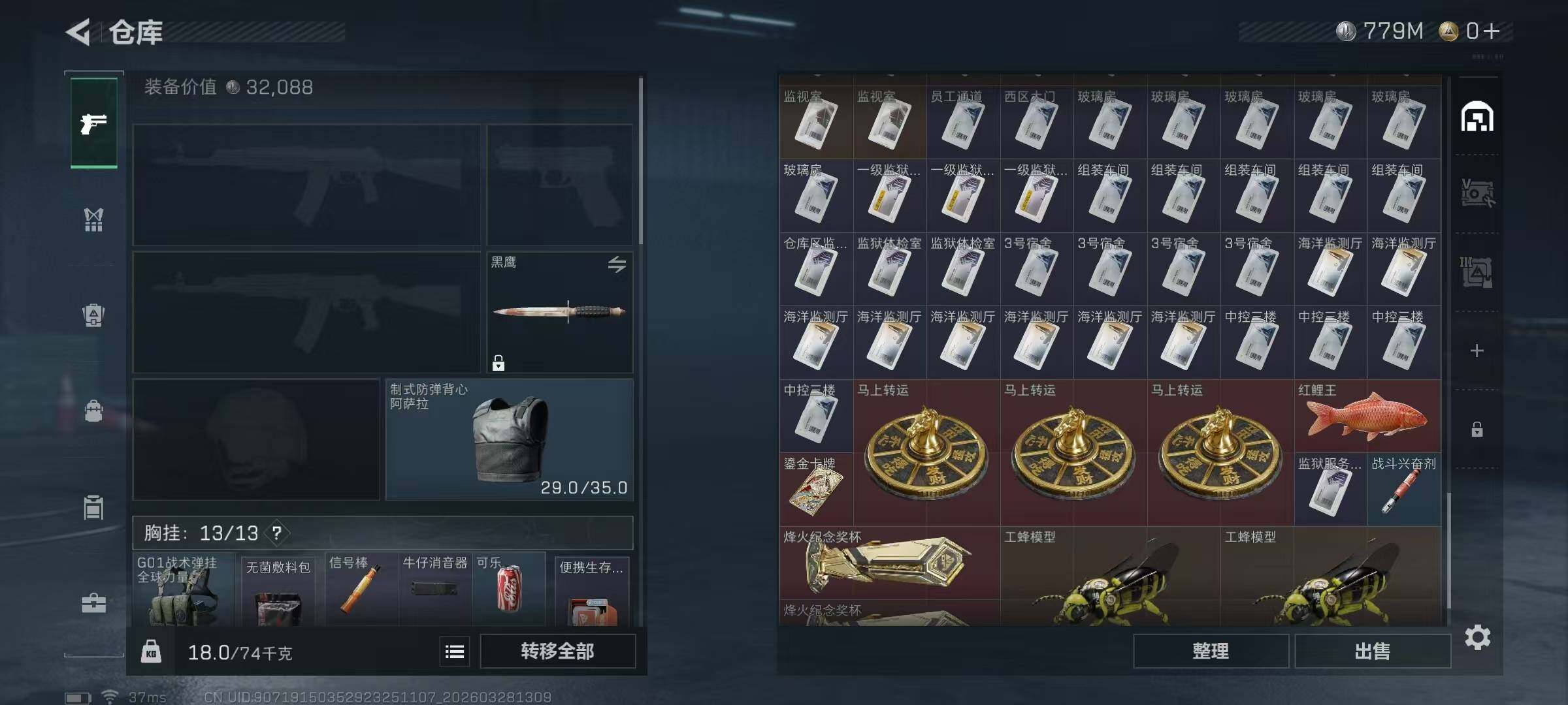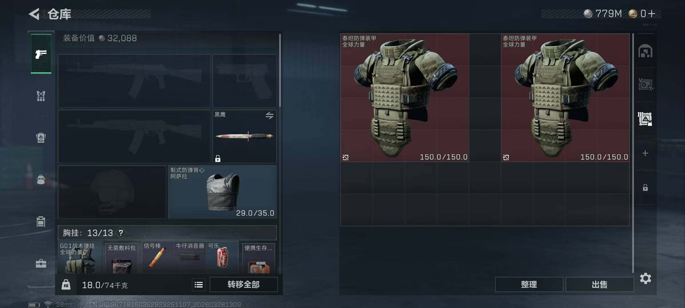 总资产(M):1003M/哈夫币(K):779614K/哈夫