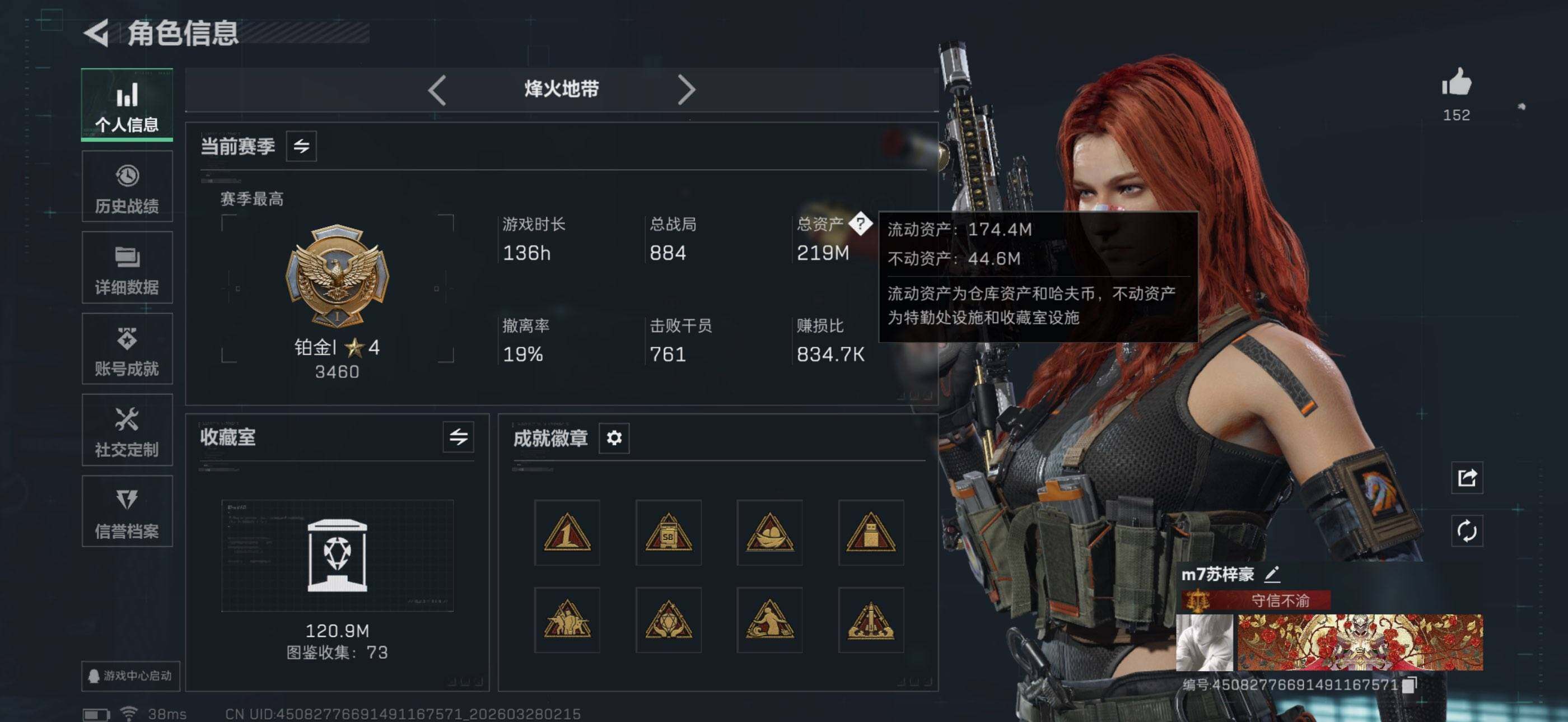 218m总资产-2278k哈夫币-60烽火等级-铂金-24战场等级-上等兵