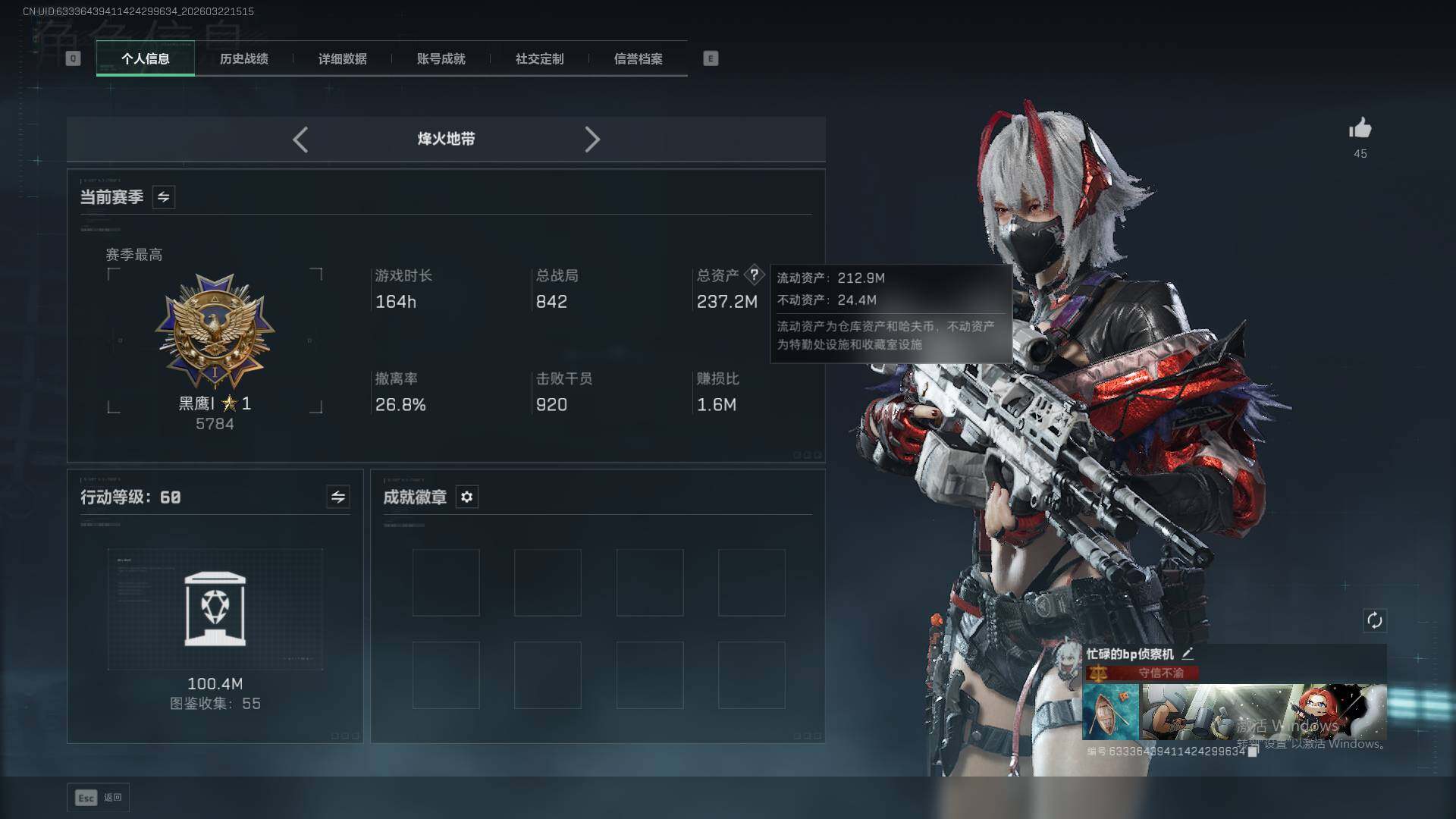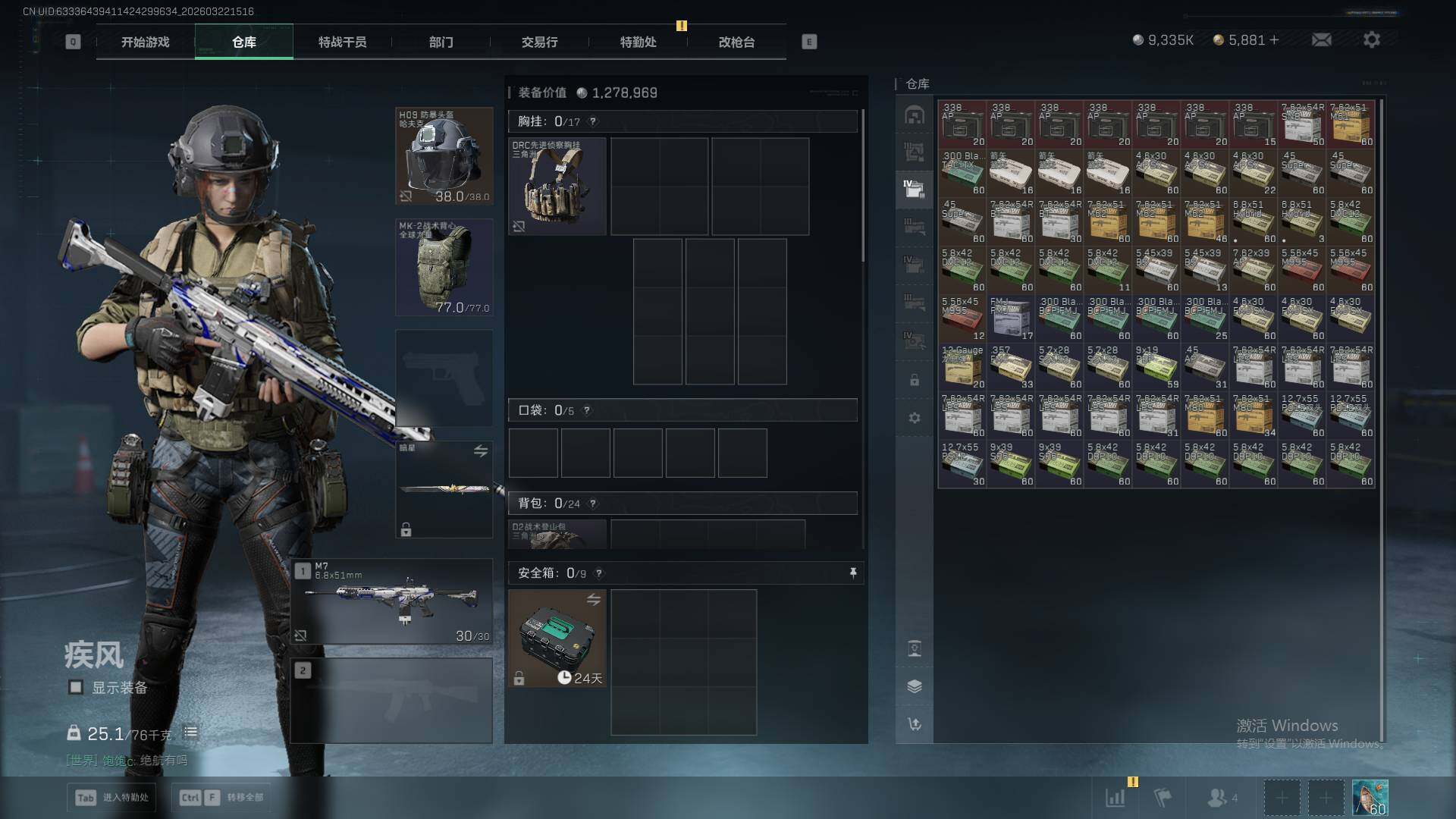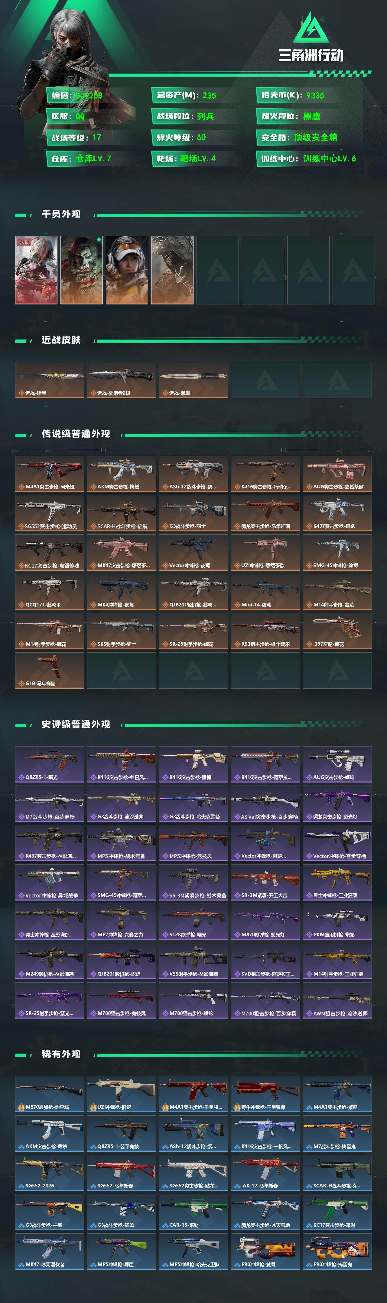 235m总资产-9335k哈夫币-60烽火等级-黑鹰-17战场等级-列兵