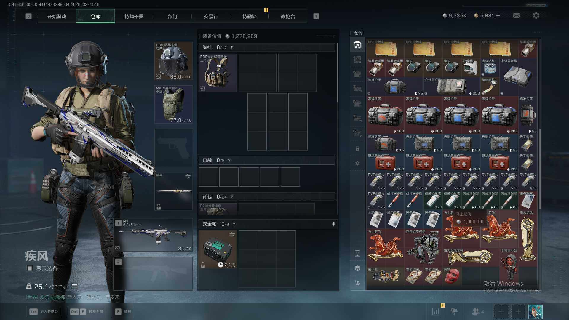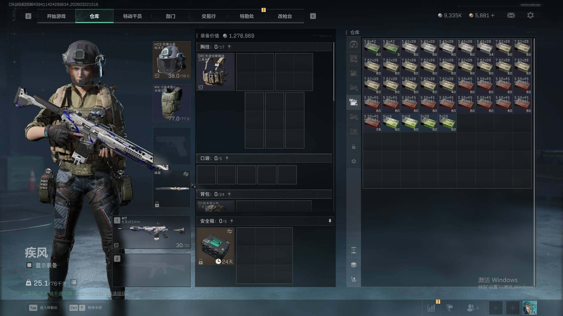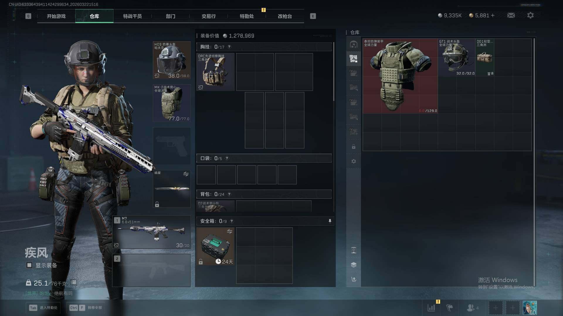 235m总资产-9335k哈夫币-60烽火等级-黑鹰-17战场等级-列兵