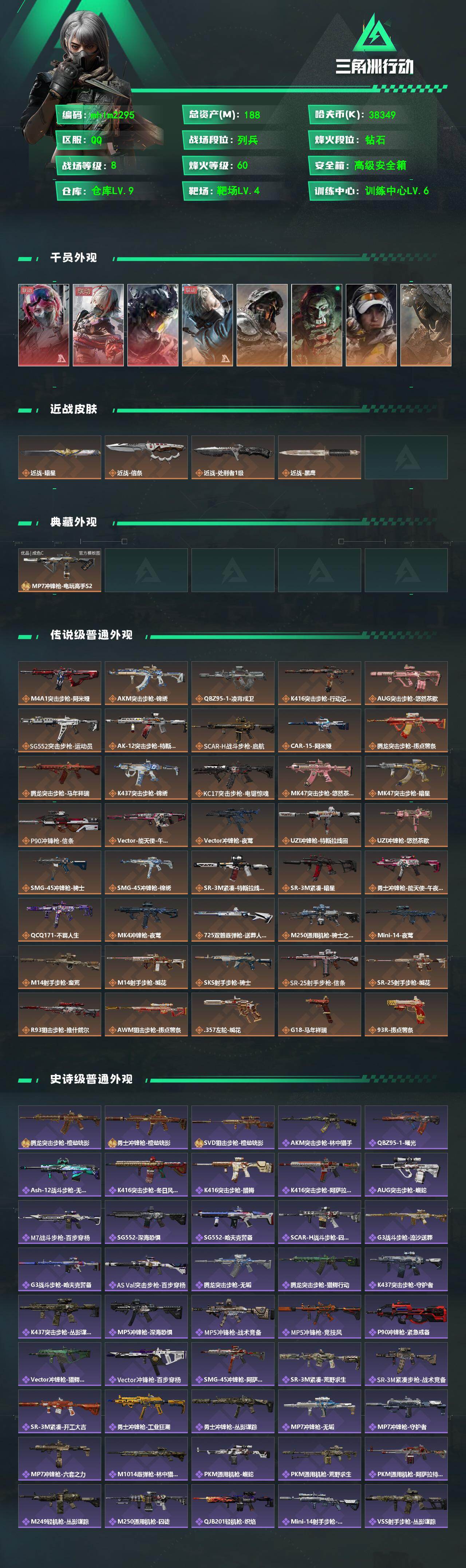 188m总资产-38349k哈夫币-60烽火等级-钻石-8战场等级-列兵