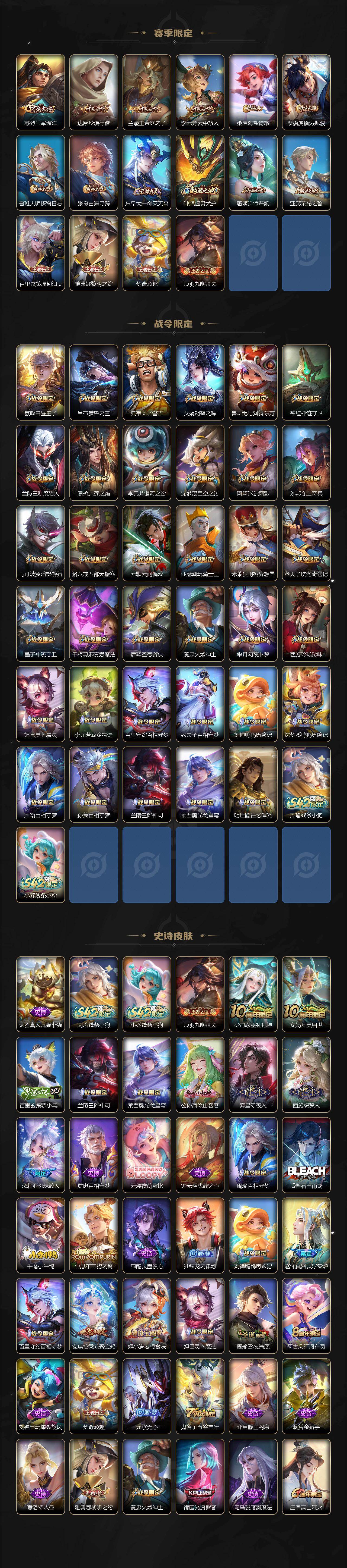 V10-最强王者段位-129英雄-436皮肤-7典藏皮肤-1典藏英雄-2无双-1珍品传说-38传说-133史诗