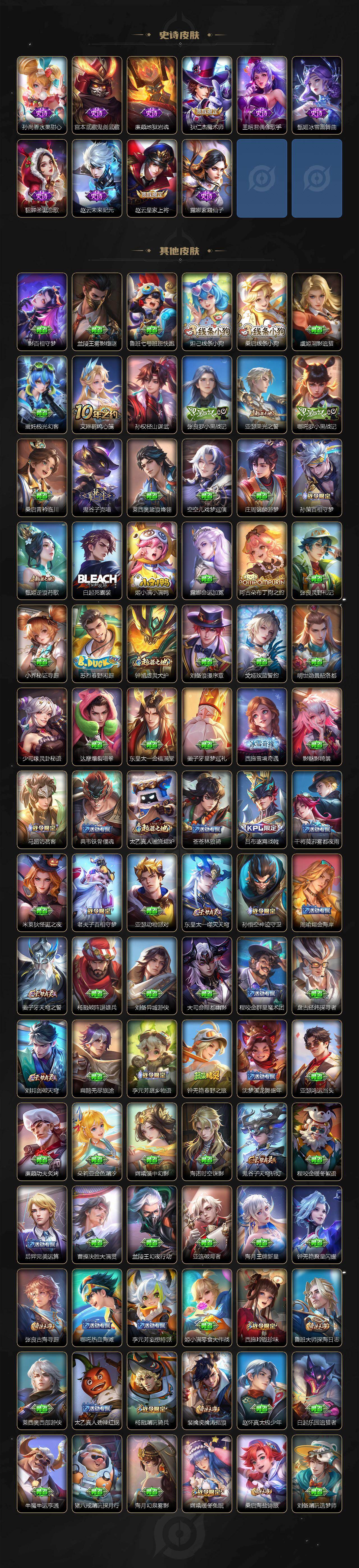 安卓Q-V7-最强王者段位-126英雄-322皮肤-1典藏皮肤-10传说-75史诗