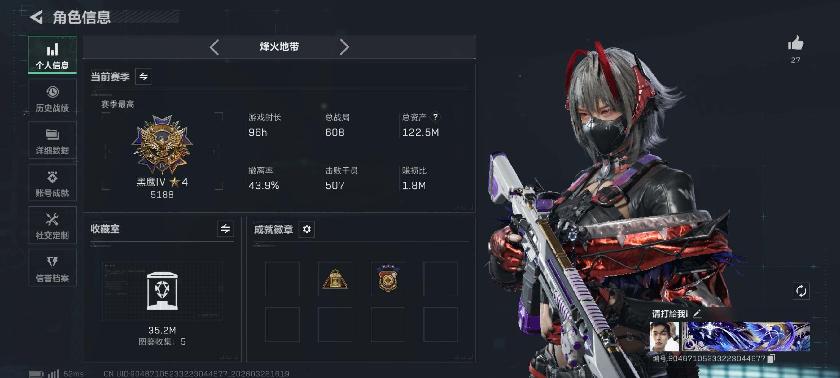 {特价出售}等级:60总资产122.5m 纯币613930 人物皮 水墨 骇爪联动 刀皮 信条 特勤仓库8级 体力负重·满级
