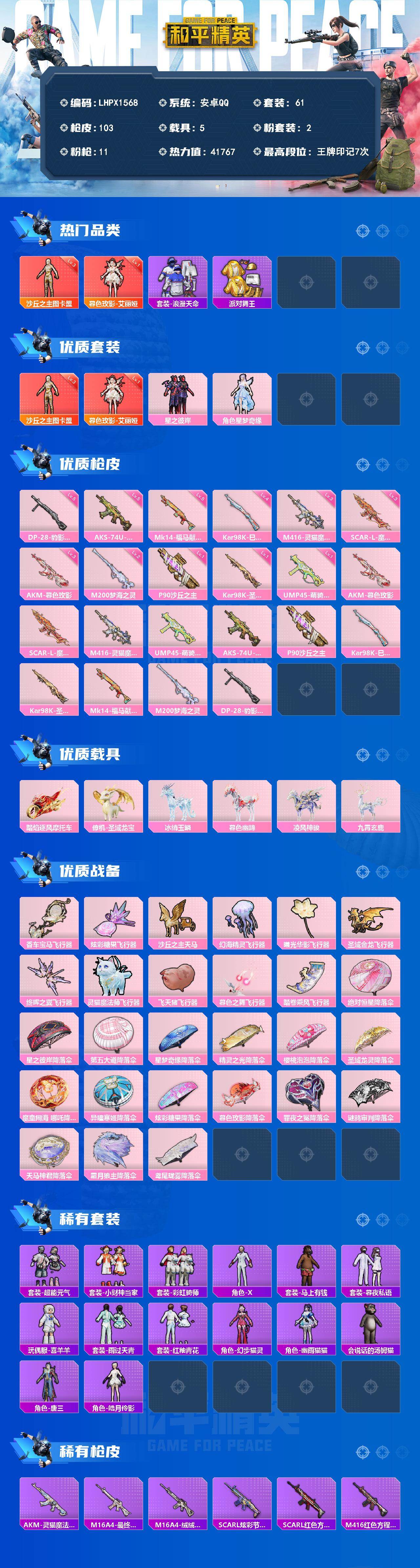 888扭蛋碎片 安卓 手Q-2神装-2粉装-11特效枪-5载具-12粉色飞行器-41767热力值-7王牌印记-61套装-103枪皮