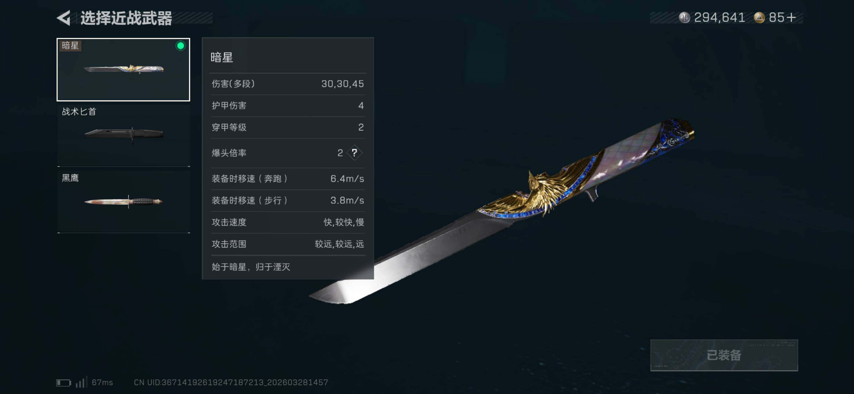 【近战皮肤】:近战-暗星,近战-黑鹰
