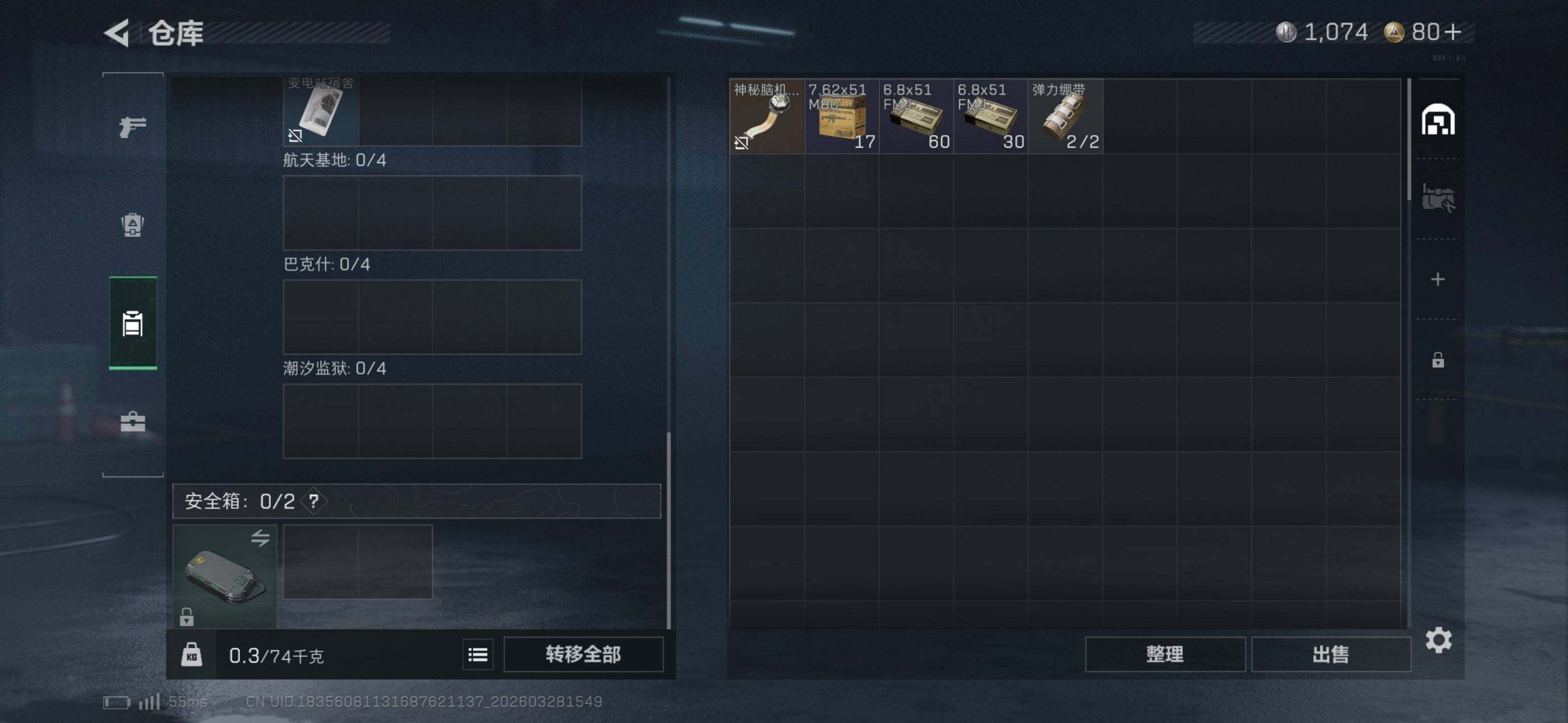 【SJZYT774】总资产(M):2M/哈夫币(K):1K/哈夫币(K):1K/传说枪皮数:6/全面战场等级:1_段位:无段位/烽火地带等级:48_段位:铂金/近战-处刑者2级/近战-黑鹰/AUG突击步枪-悠然茶歇/MK47突击步枪-悠然茶歇/UZI冲锋枪-悠然茶歇/M14射手步枪-缄花/SR-25射手步枪-缄花/.357左轮-缄花/SMG-45冲锋枪-阿萨拉特攻/MP7冲锋枪-六套之力/M250通用机枪-囚徒/QJB201轻机枪-炽焰/SG552突击步枪-贴花艺术/MP5冲锋枪-弄臣/Vect