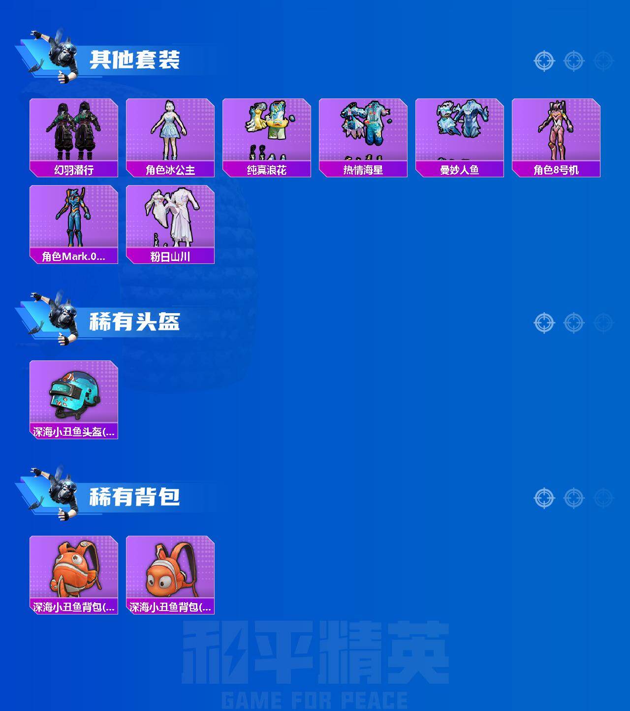 【热门品类】:套装-金羽特工,套装-龟仙人,角色-8号机,角色-Mark.06,撬棍-龙胆亮银枪