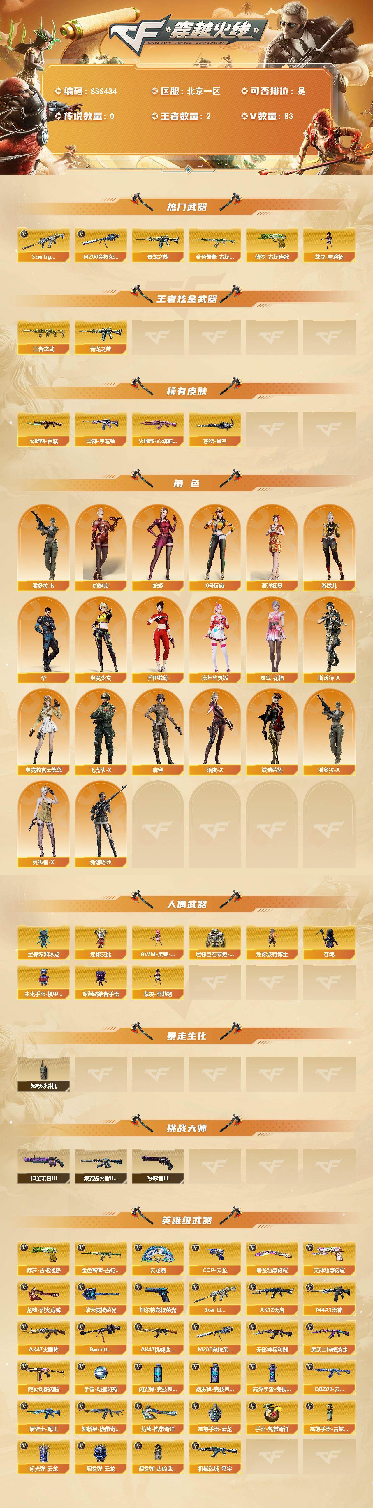 北京一区-78V-2王者武器数-0炫金武器数【热门武器