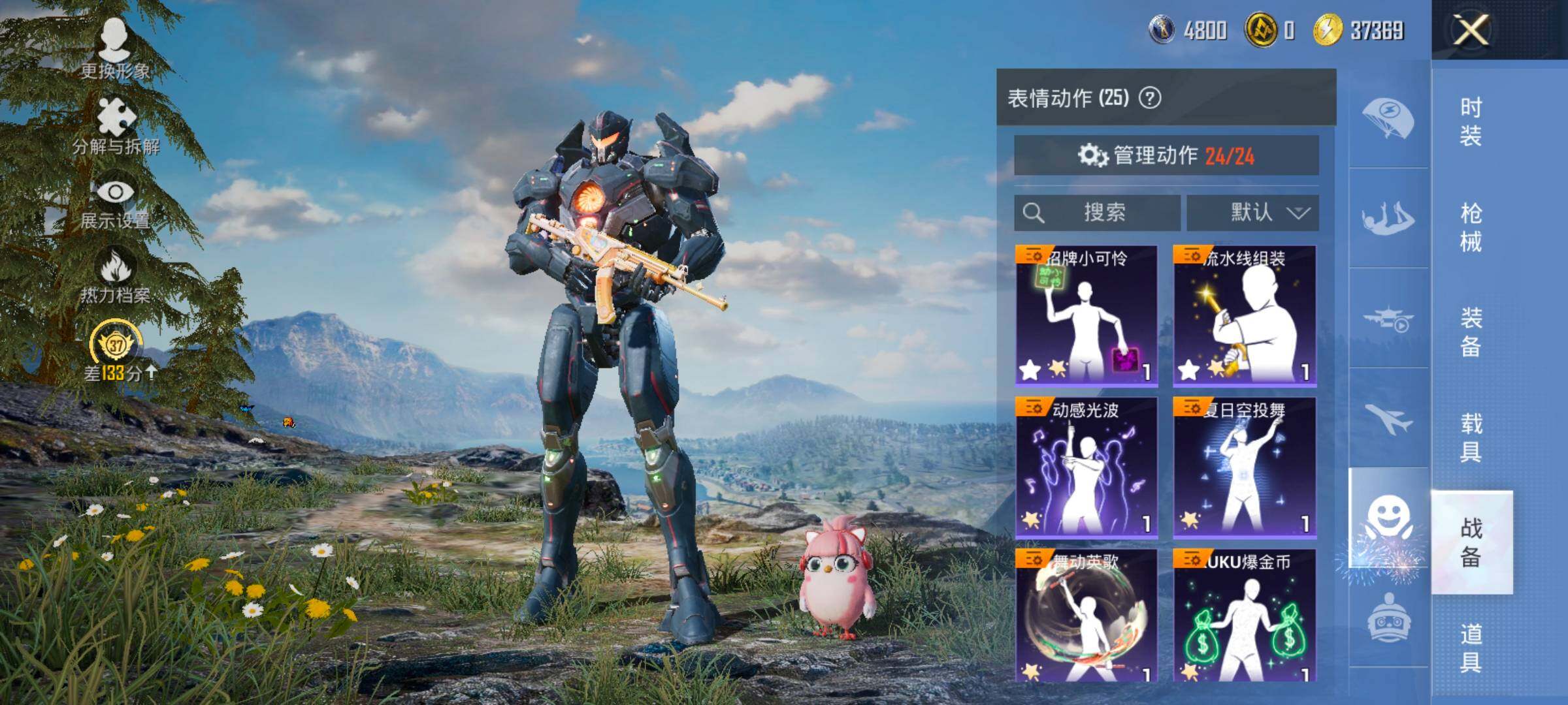 【5特效枪】 Kar98K-巳巳如意 (4级) DP-28-豹影疾电 (5级) UMP45-量子极限 (5级) Mk14-福马献瑞 (5级) ACE32-萌骑漫游 (2级)