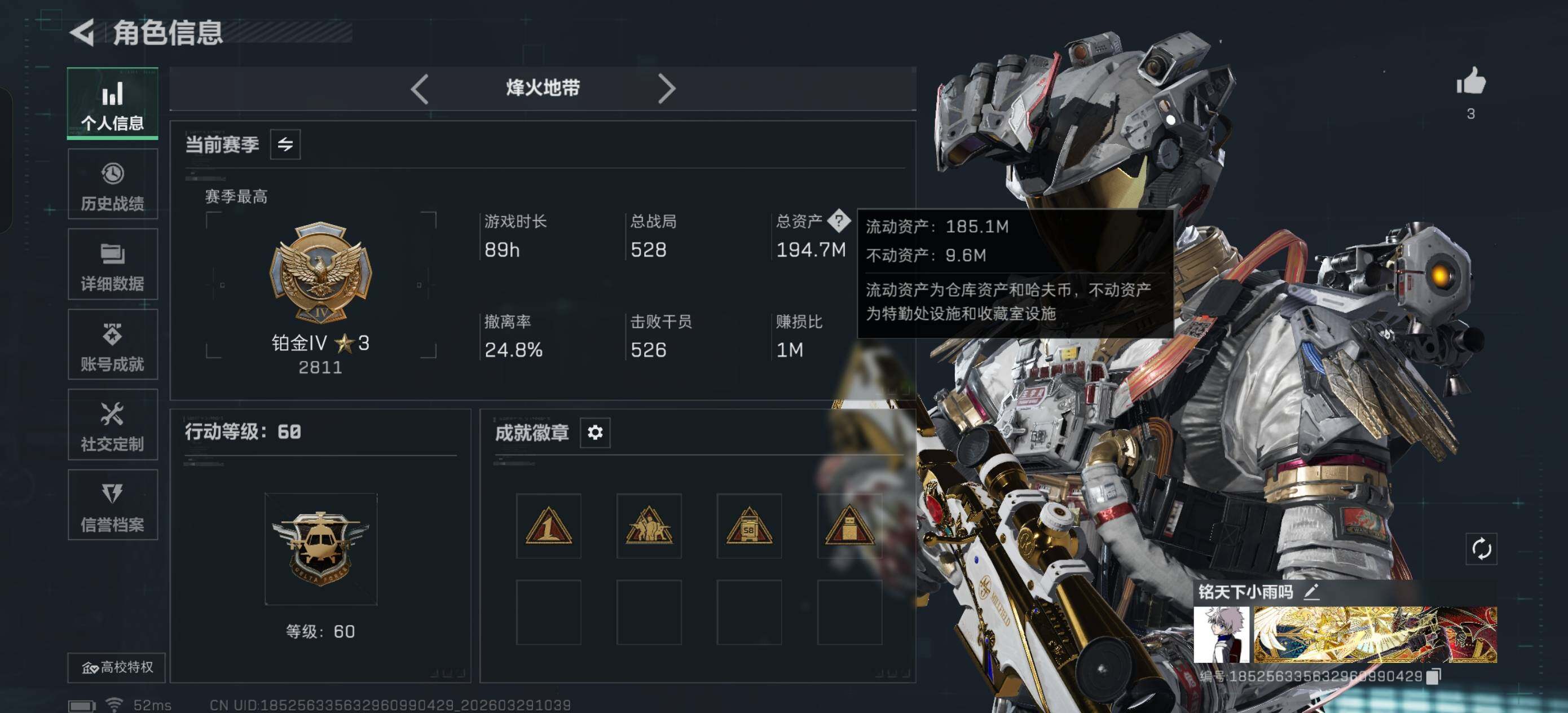 194m总资产-47048k哈夫币-60烽火等级-铂金-17战场等级-上等兵