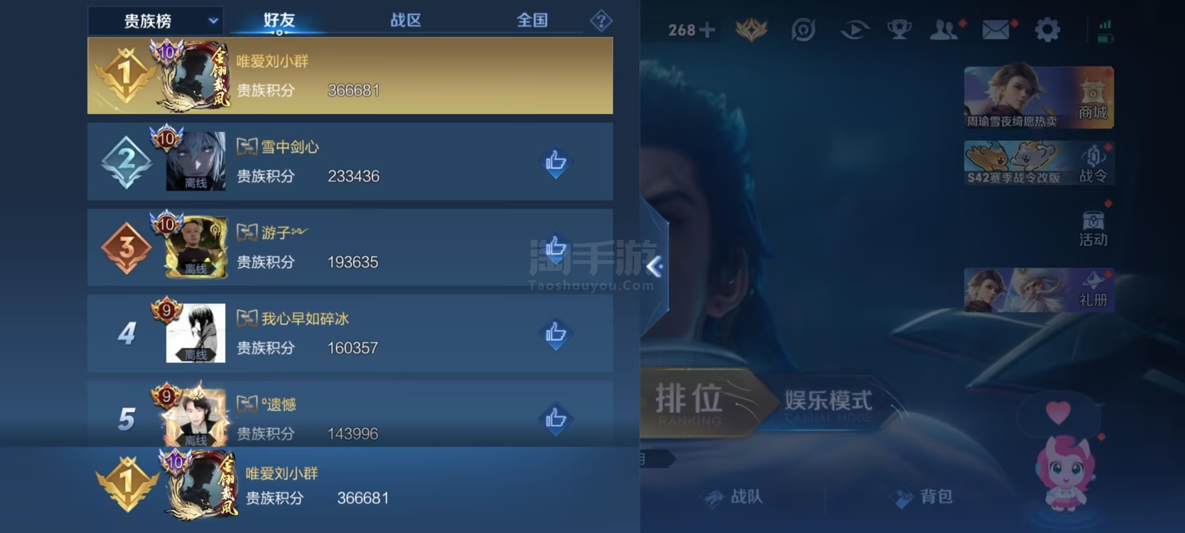 【王者荣耀】用户273*****e